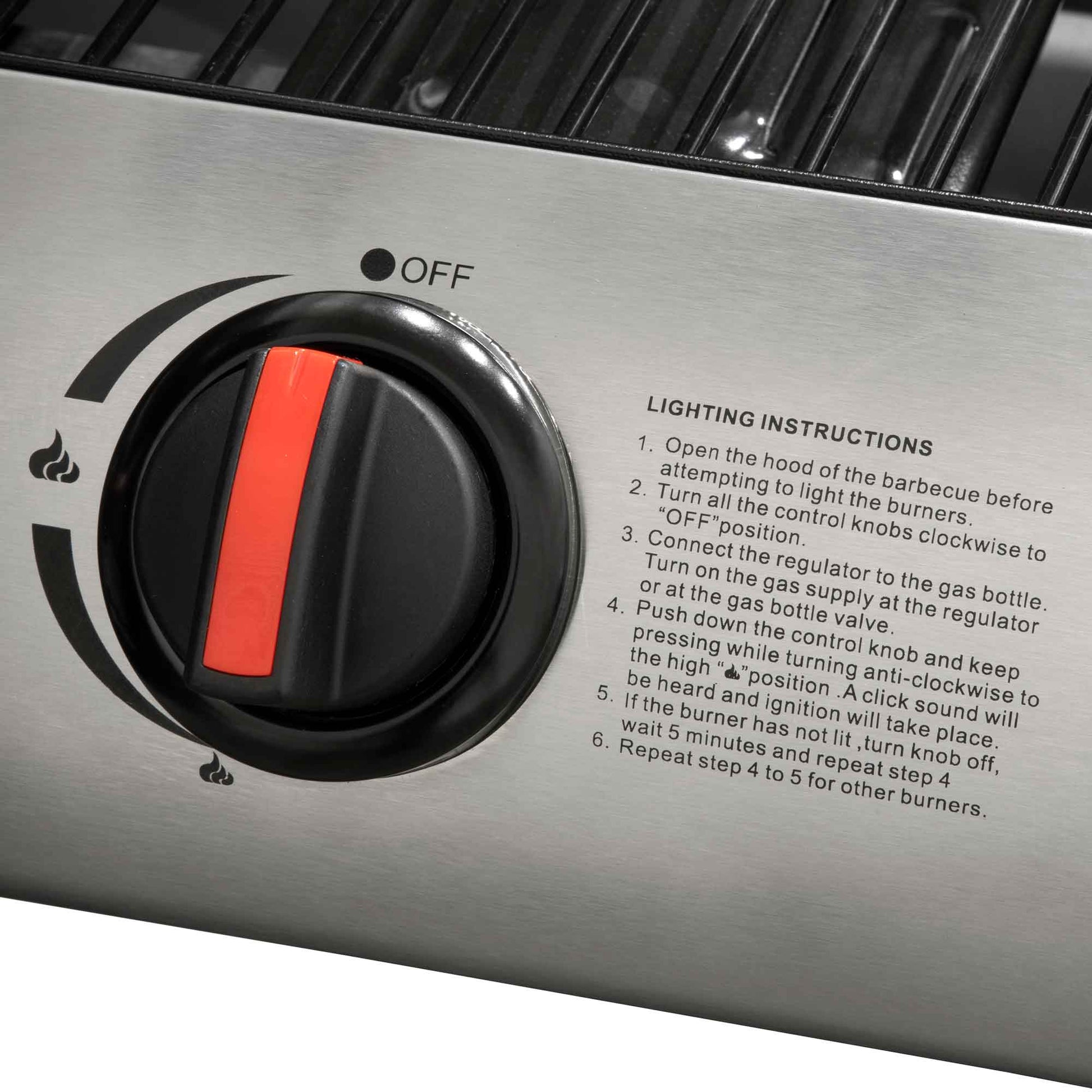 - Quick Ignition - Piezo ignition ensures a safe and easy start-up every time. Supplied with 27mm regulator and hose assembly for use with propane patio gas bottles. Supplied with water resistant PVC cover. Product Size (W x D x H): 1100 x 570 x 980mm. Weight: 19.5kg.
