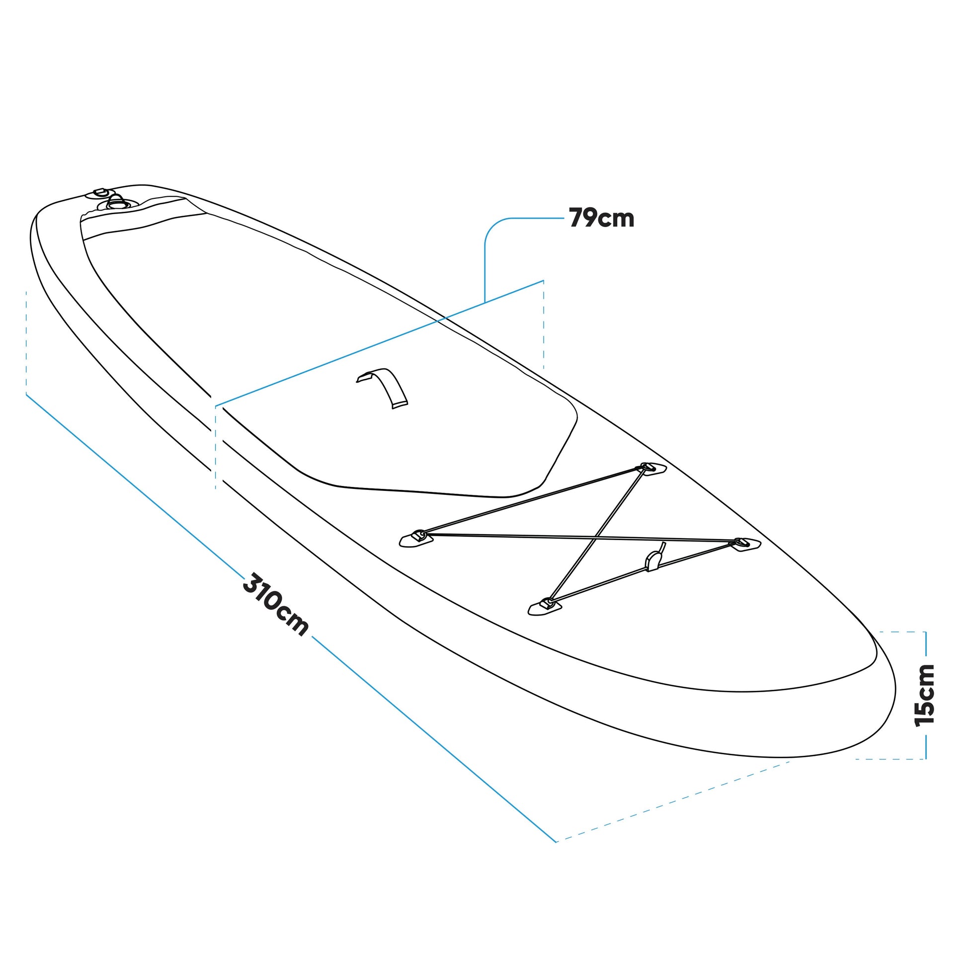 - Generous Volume - Boasting a voluminous design with 308 litres, this SUP offers excellent buoyancy, ensuring a stable and enjoyable experience on the water. The ample volume provides a solid platform for paddlers of different skill levels, contributing to a positive paddling experience.