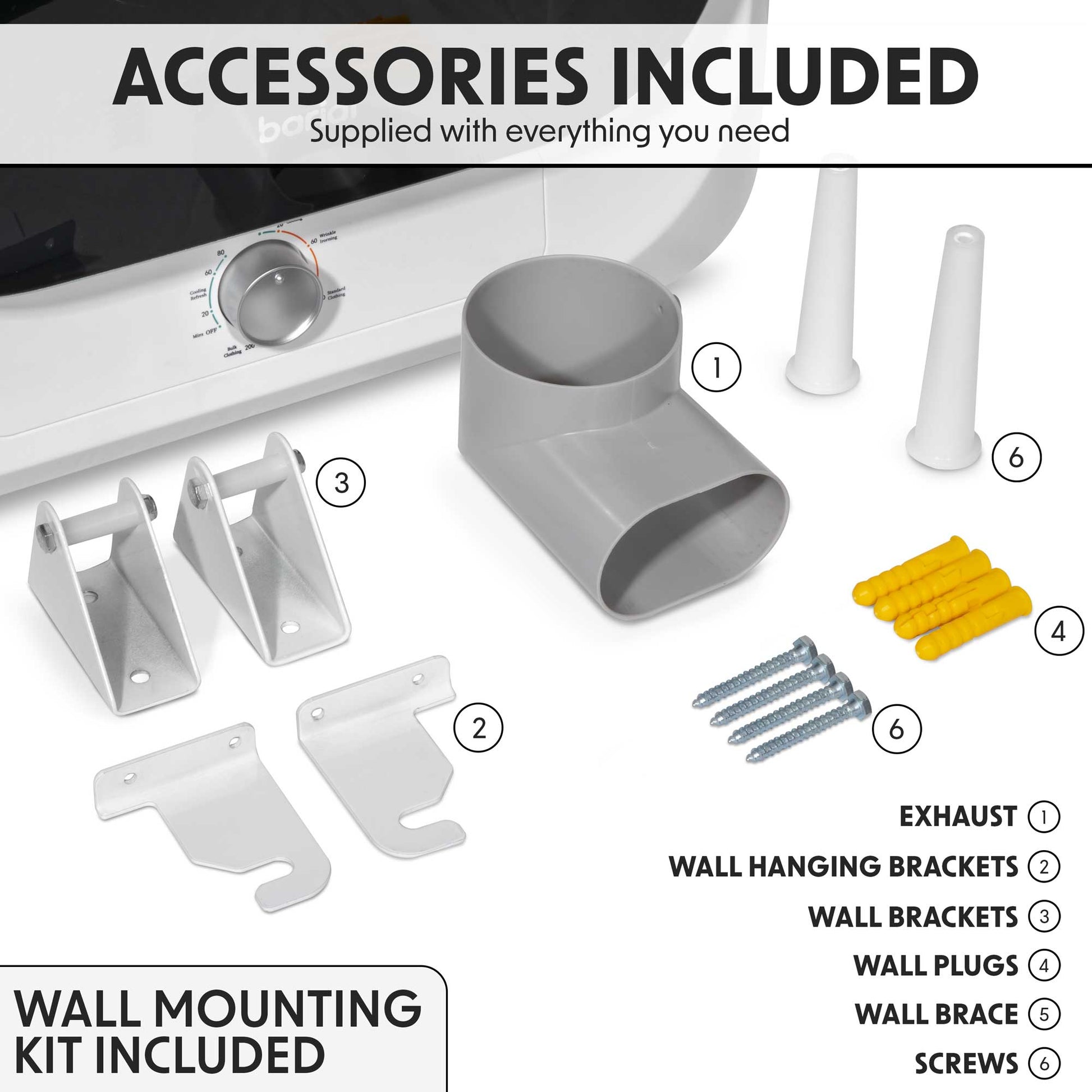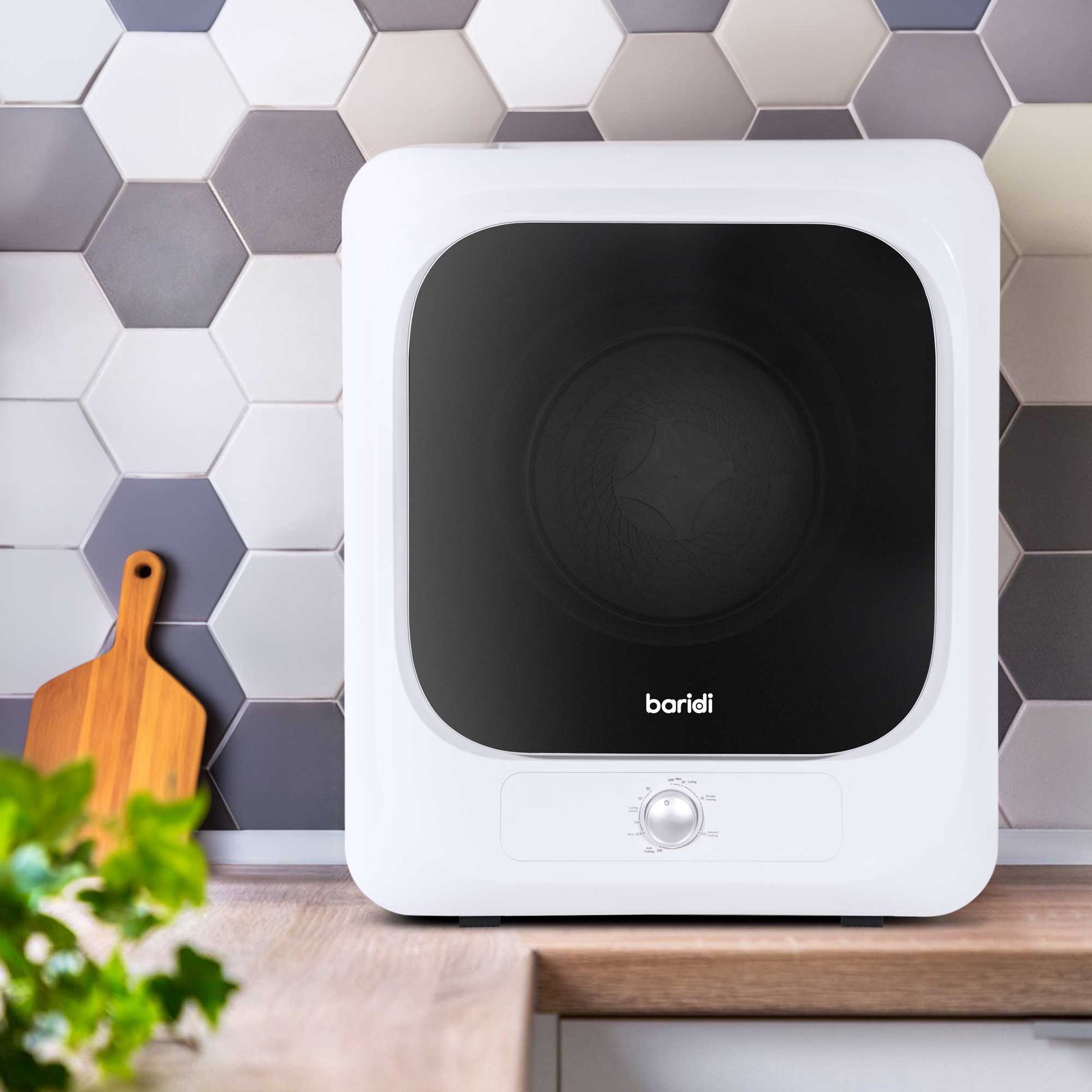 - Compact - This 2.5KG capacity vented clothes dryer maximises space efficiency and practicality. It can be conveniently placed on a table top, kitchen countertop or wall mounted to create more room.