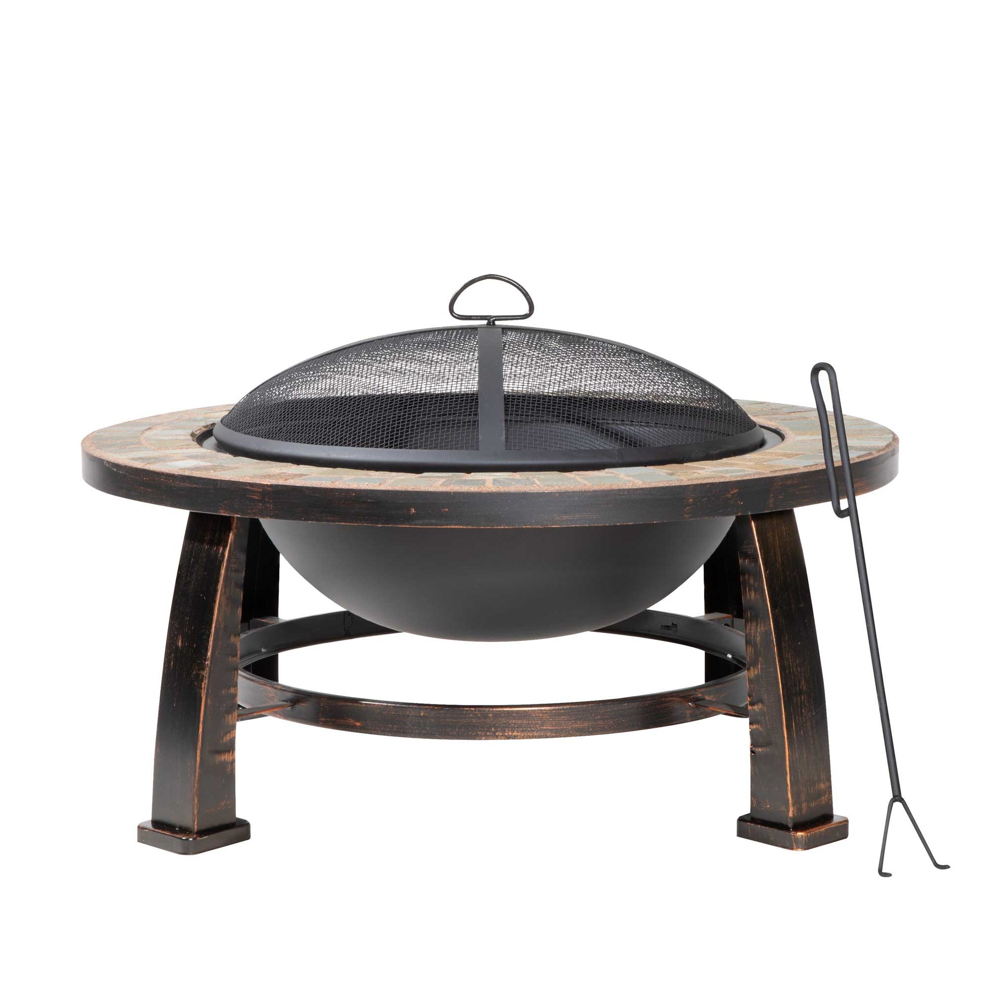 - Contemporary Style - This stylish looking round fire pit with an outer circle of tiles is perfect for enjoying time at home with friends and family while on your patio.