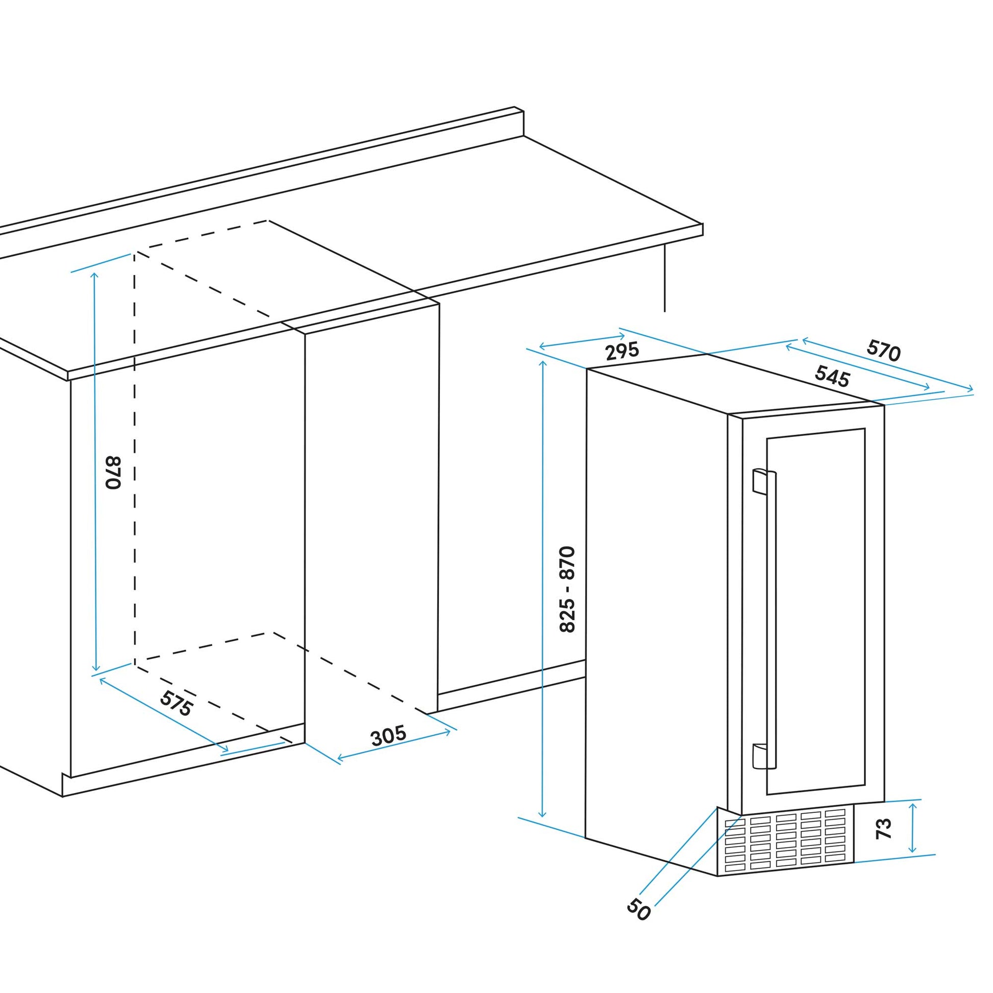 - Slim Fit - Add style to your kitchen with this 30cm slim built-under wine cooler to fit in any space!