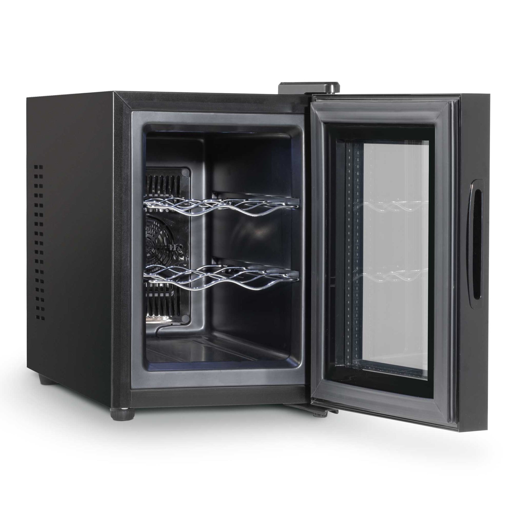 - Compact and Spacious: Despite its compact size, the wine cooler can accommodate up to six bottles, making it perfect for small apartments, kitchens, or countertop use. It maximizes storage capacity without taking up excessive space.