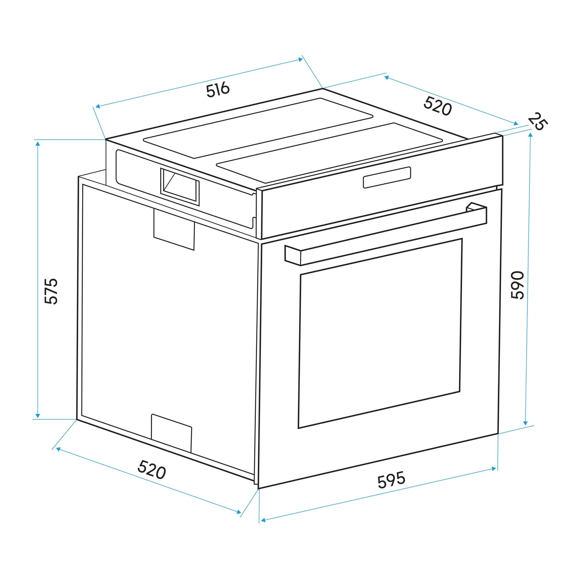 - Oven Size 595 x 520 x 590mm, Internal dimensions 425 x 370 x 345mm. Warming Drawer Size: 595 x 545 x 140mm