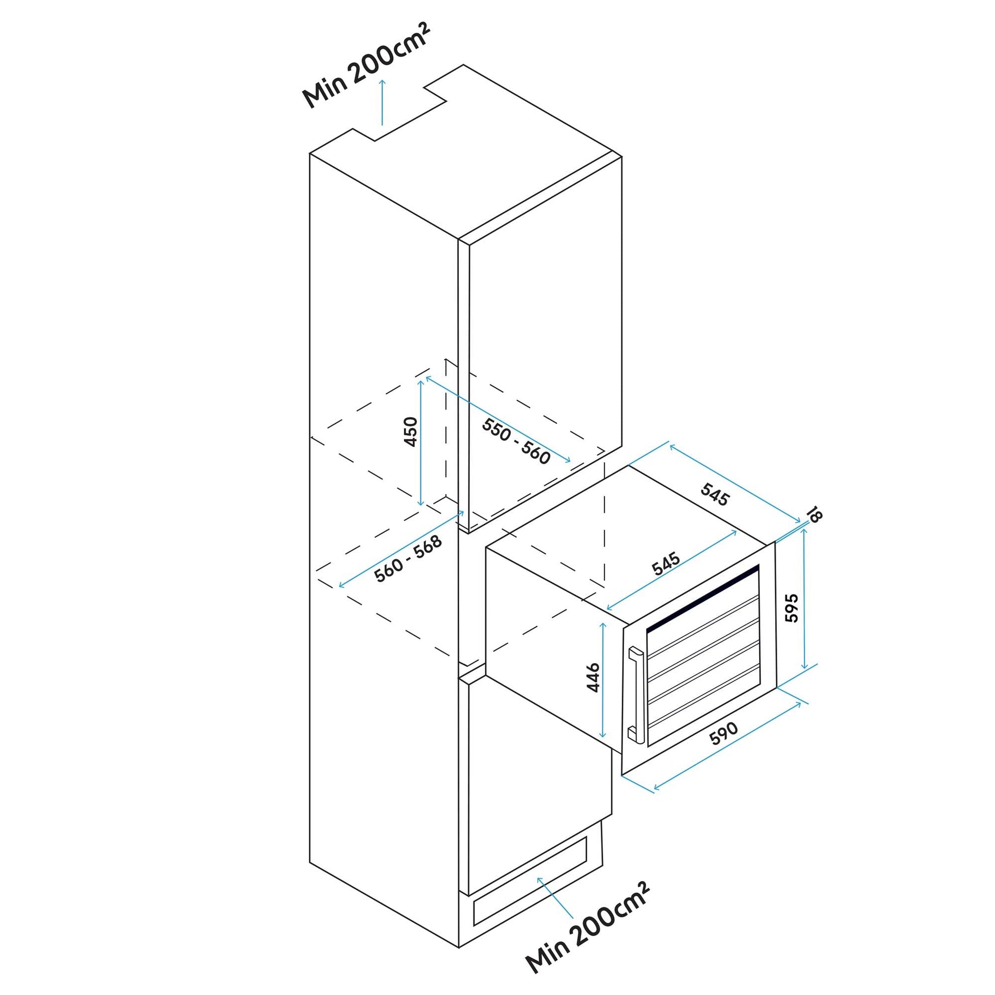 - Quiet Efficiency - At a low 40dB this fridge is designed to be seamlessly integrated into your kitchen cabinets allowing you to chill up to 36 bottles of wine to the perfect temperature. Annual energy consumption 139 KWh/a.