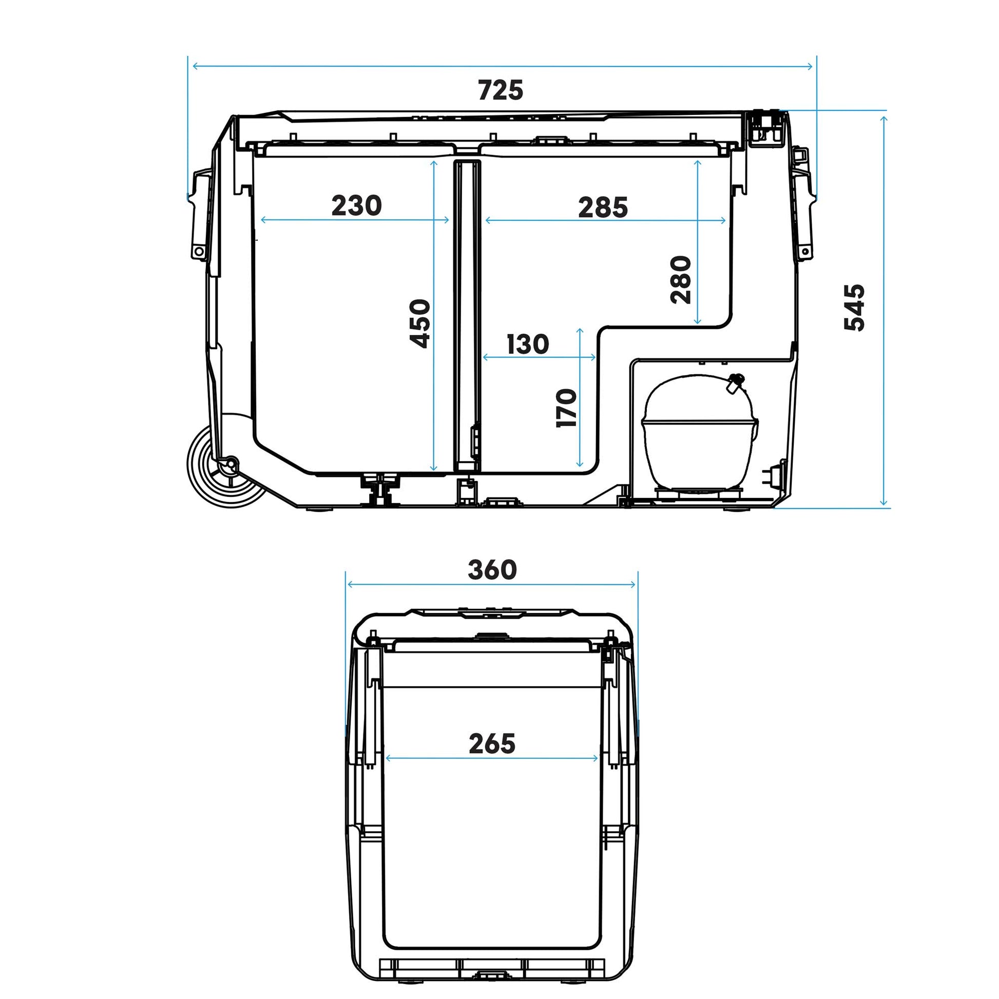 60L Portable Car Fridge, Freezer, 12/24/230V Dual Zone Compressor - DL133