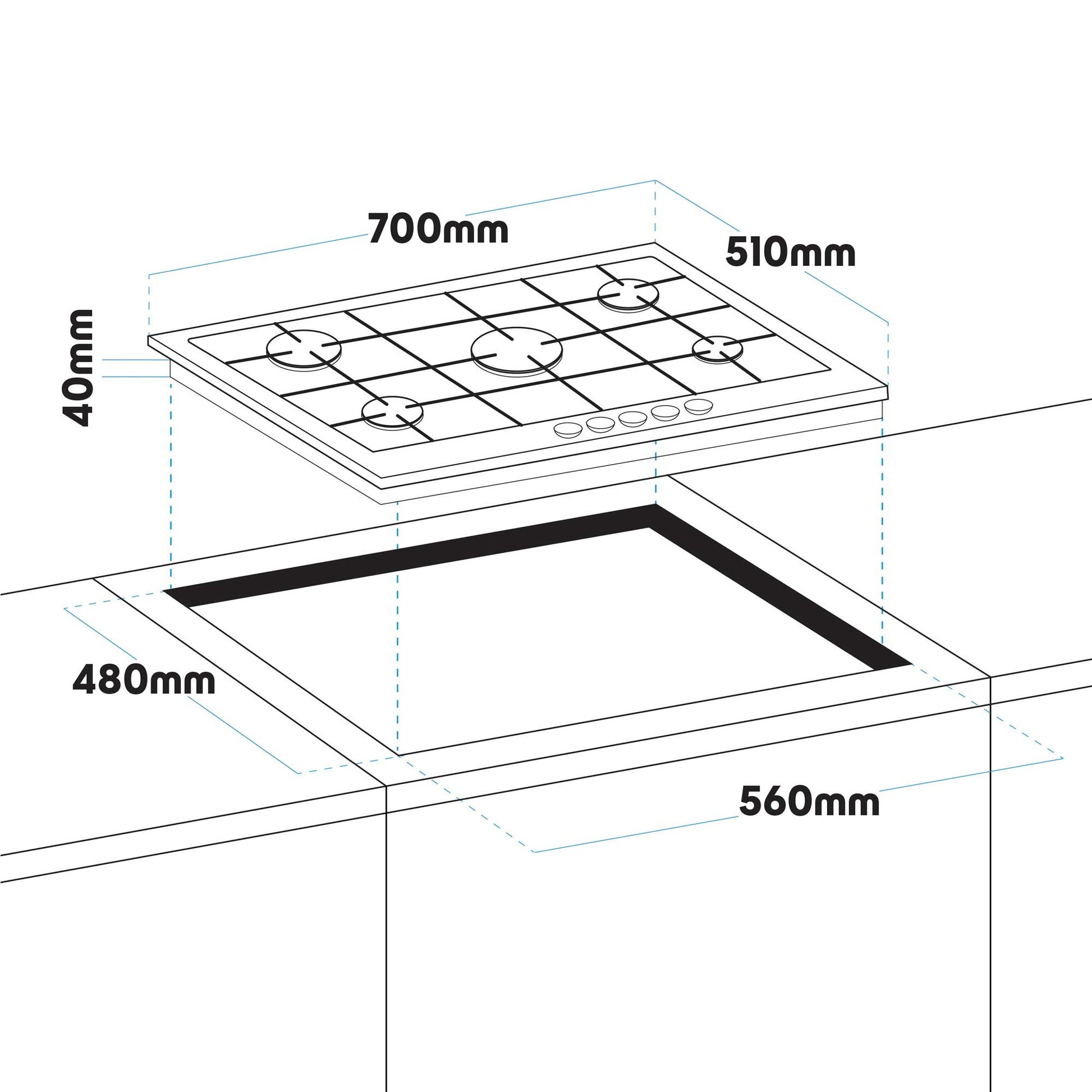 - High Cooking Power - With a total power output of 11kW, this gas hob provides quick and efficient heating, reducing cooking times and enabling high-temperature cooking when needed.