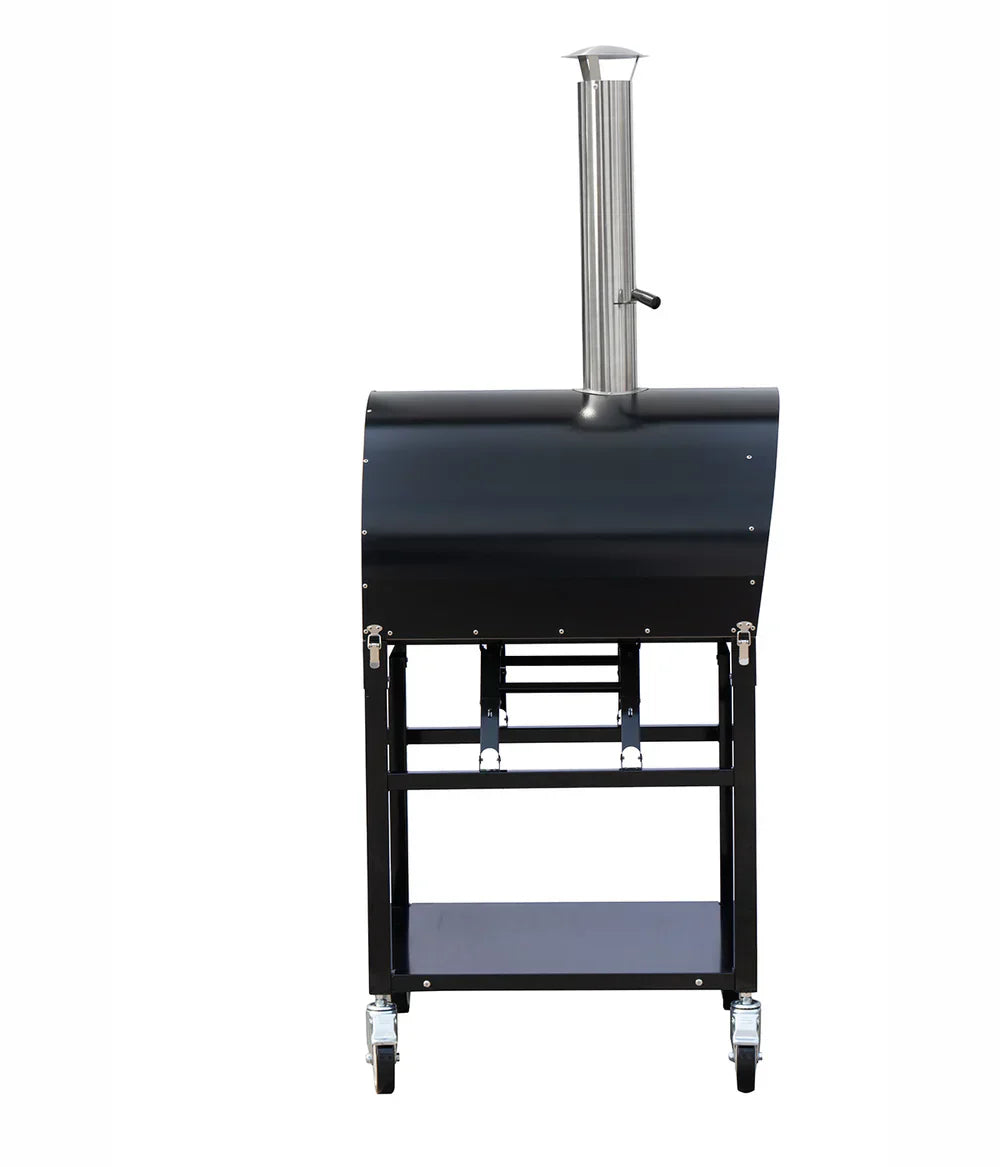 The oven also comes with a base shelf for wood storage, so you can keep your wood close at hand when using it.