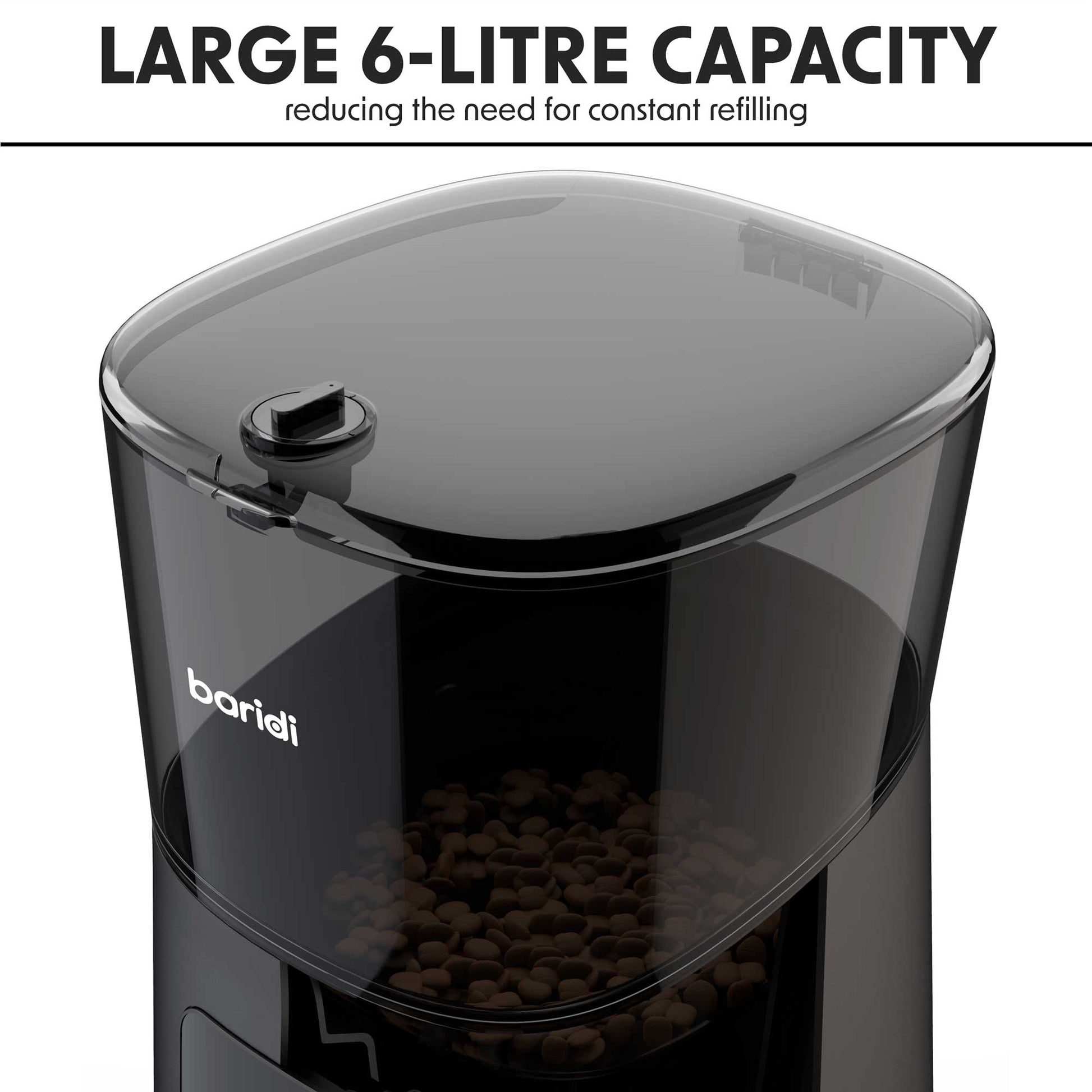 - Generous 6-Litre Capacity - Ensure your pet is well-fed even when you're away with a spacious 6-litre food storage capacity, reducing the need for constant refilling.