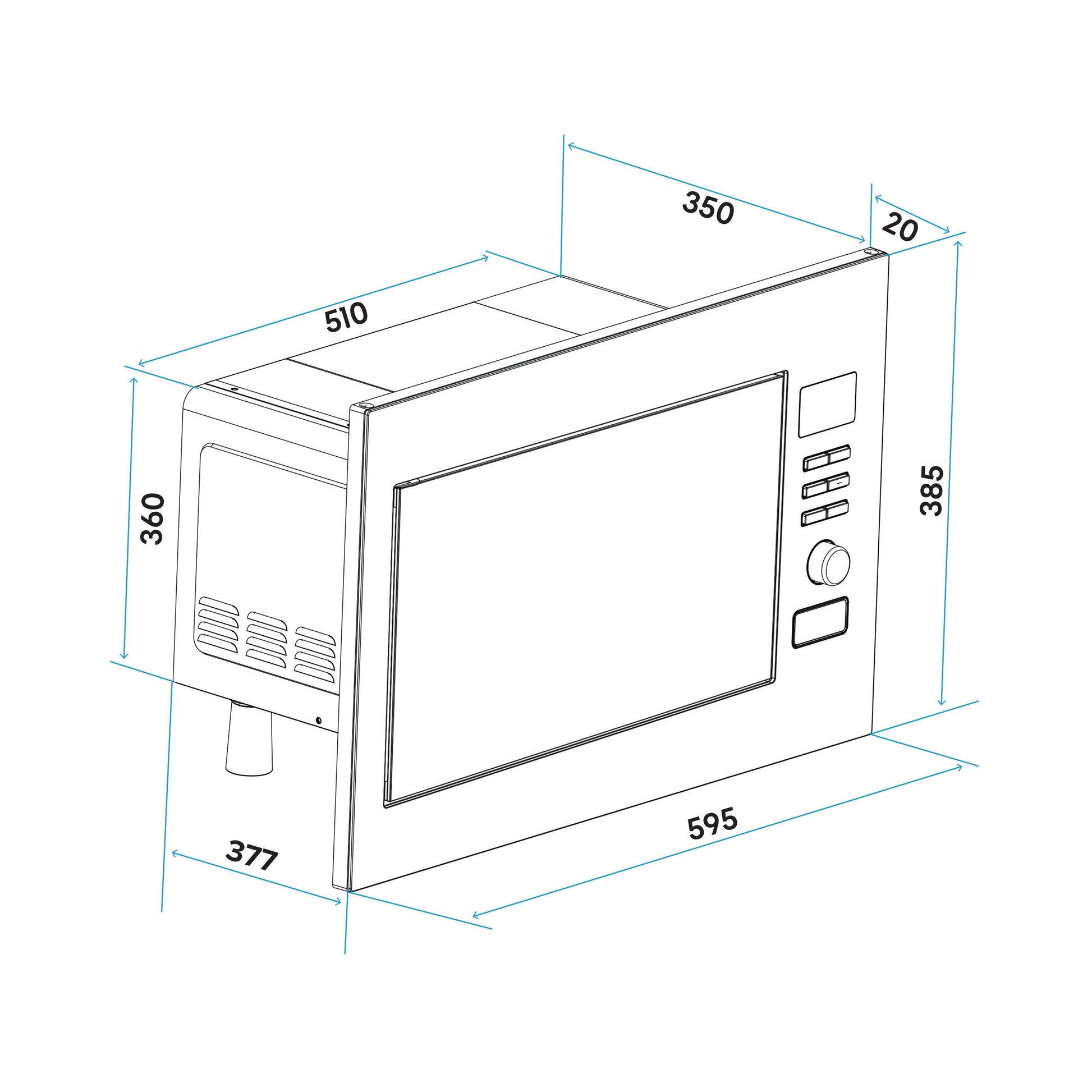 - Ø315mm Turntable, Product Dimensions (W x D x H): 595 x 377 x 385mm, Required Cavity Size (W x D x H): 560 x 550 x 360mm
