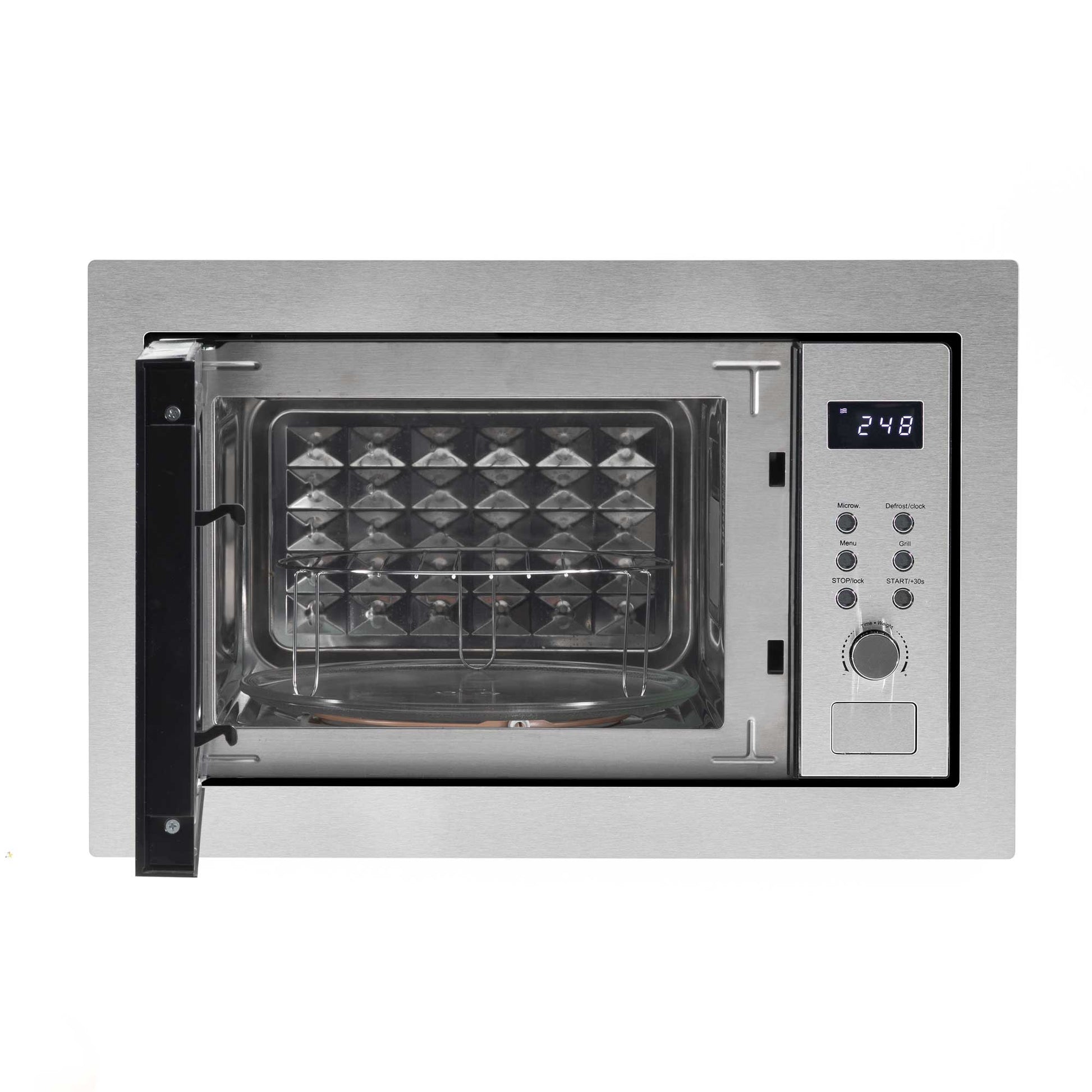 - This built in Microwave will fit beautifully into your kitchen, and look right at home amongst your other appliances and kitchen units. The appliance includes 900 watts of microwave power, providing quick and convenient cooking in your home.