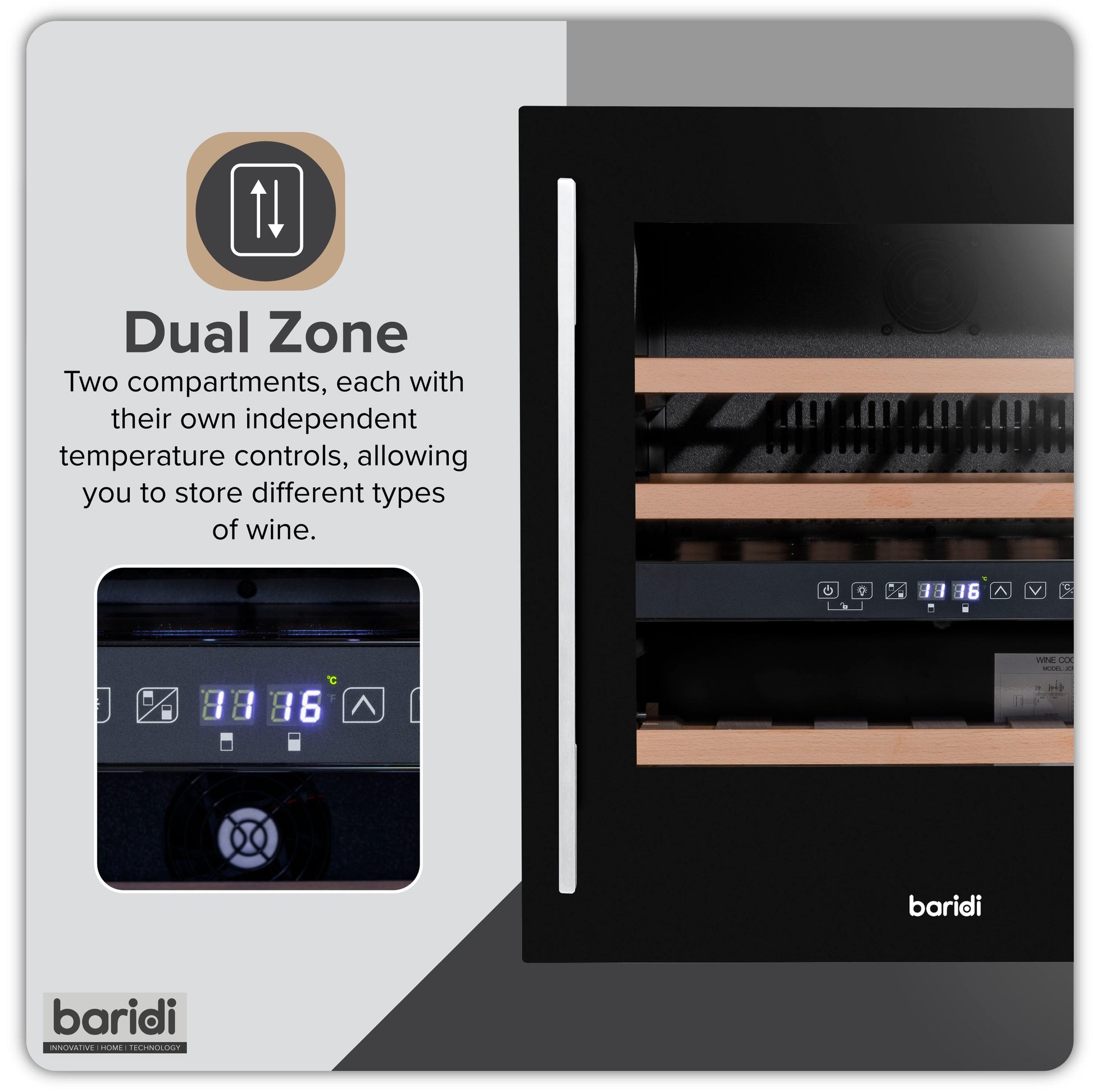 Baridi 60cm Built-In 36 Bottle Dual Zone Wine Cooler with Beech Wood Shelves - Black - DH117
