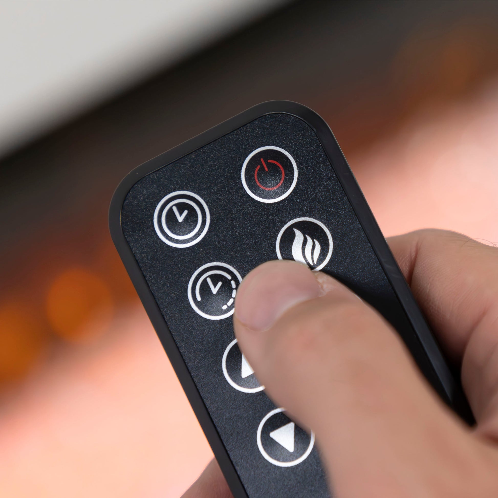 - PROGRAMMABLE TIMER - With a 7-day timer and two programmable periods each day, heat your room only when required. Supplied with remote control, so you can manage your fireplace from the comfort of your chair.