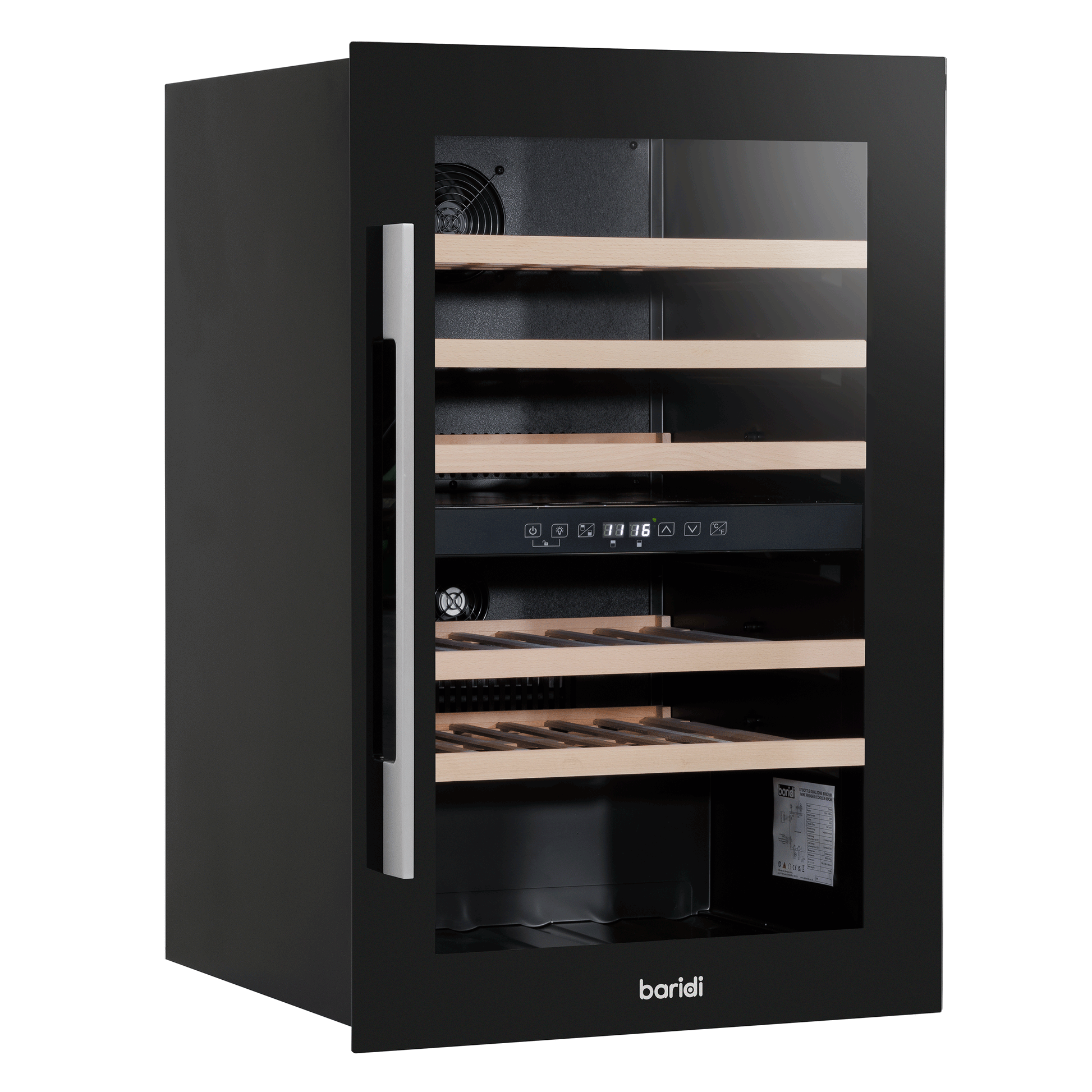 Baridi 60cm Built-In 57 Bottle Dual Zone Wine Cooler with Beech Wood Shelves - Black - DH118