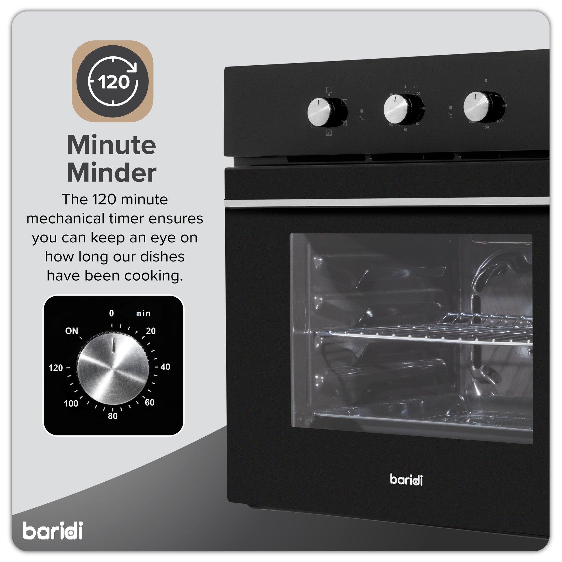 Baridi 60cm Built-In Five Function Fan Assisted Electric Oven with Timer, 55L Capacity, Black - DH110