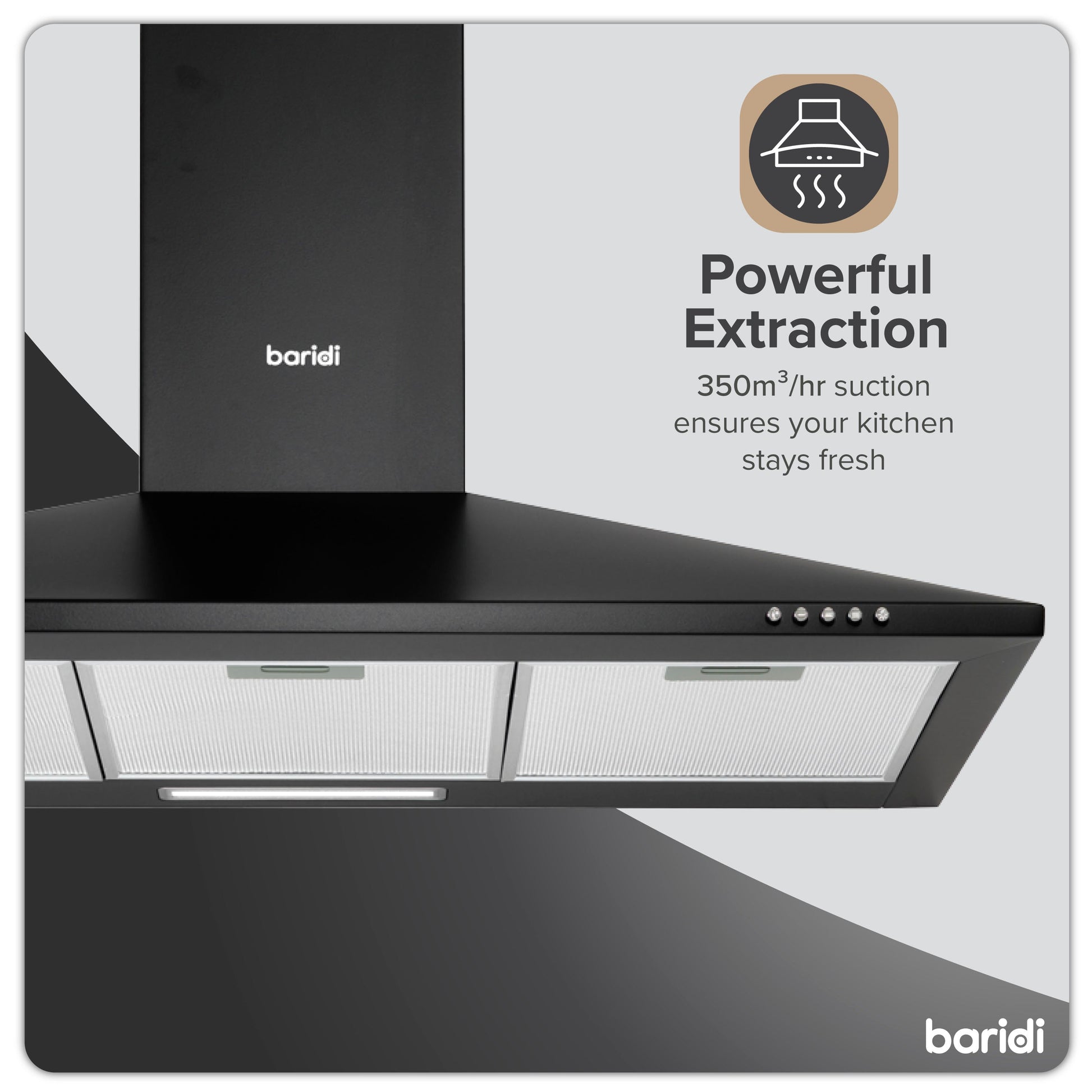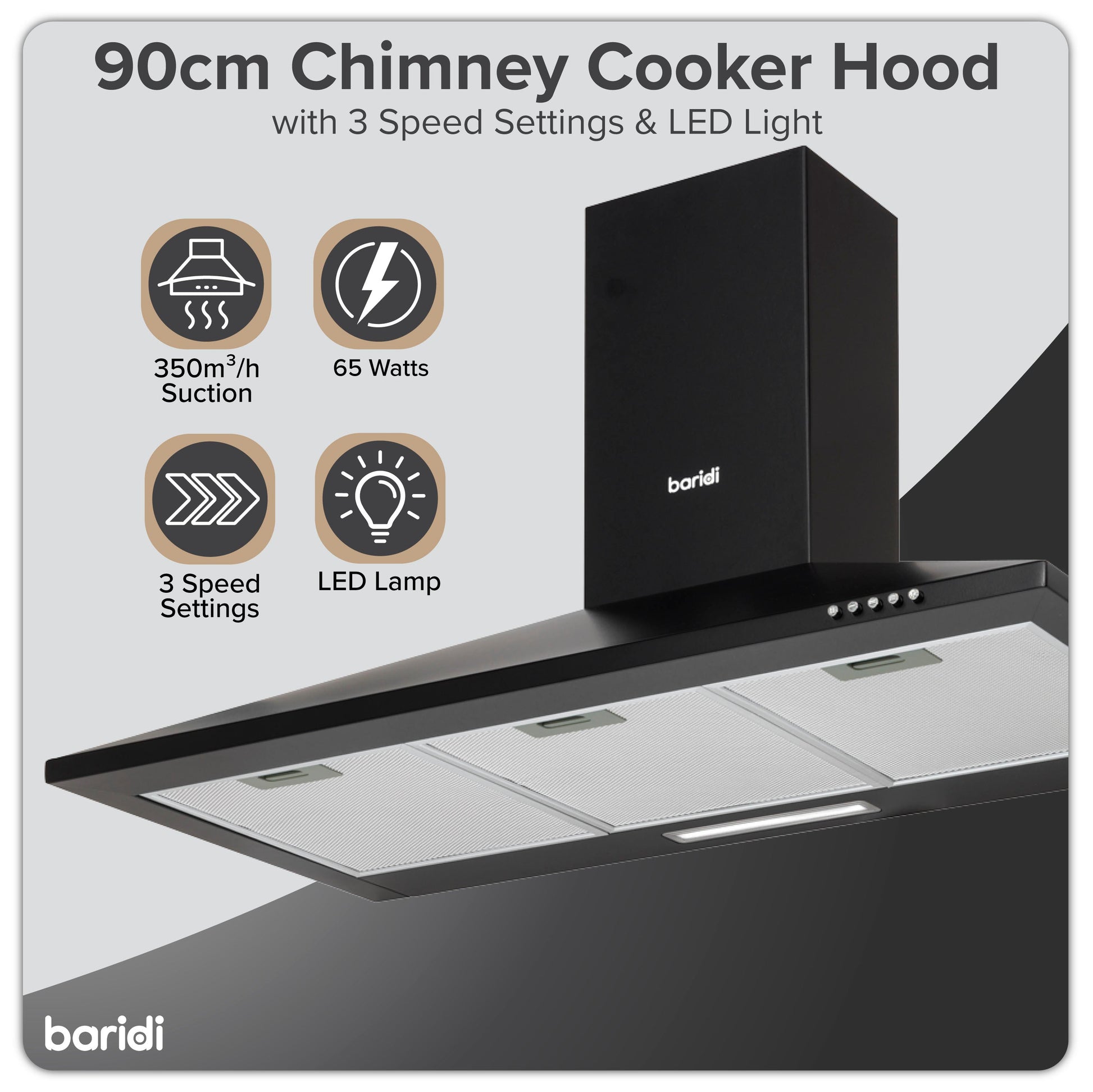 Baridi 90cm Chimney Style Cooker Hood with Carbon Filters, Black - DH59