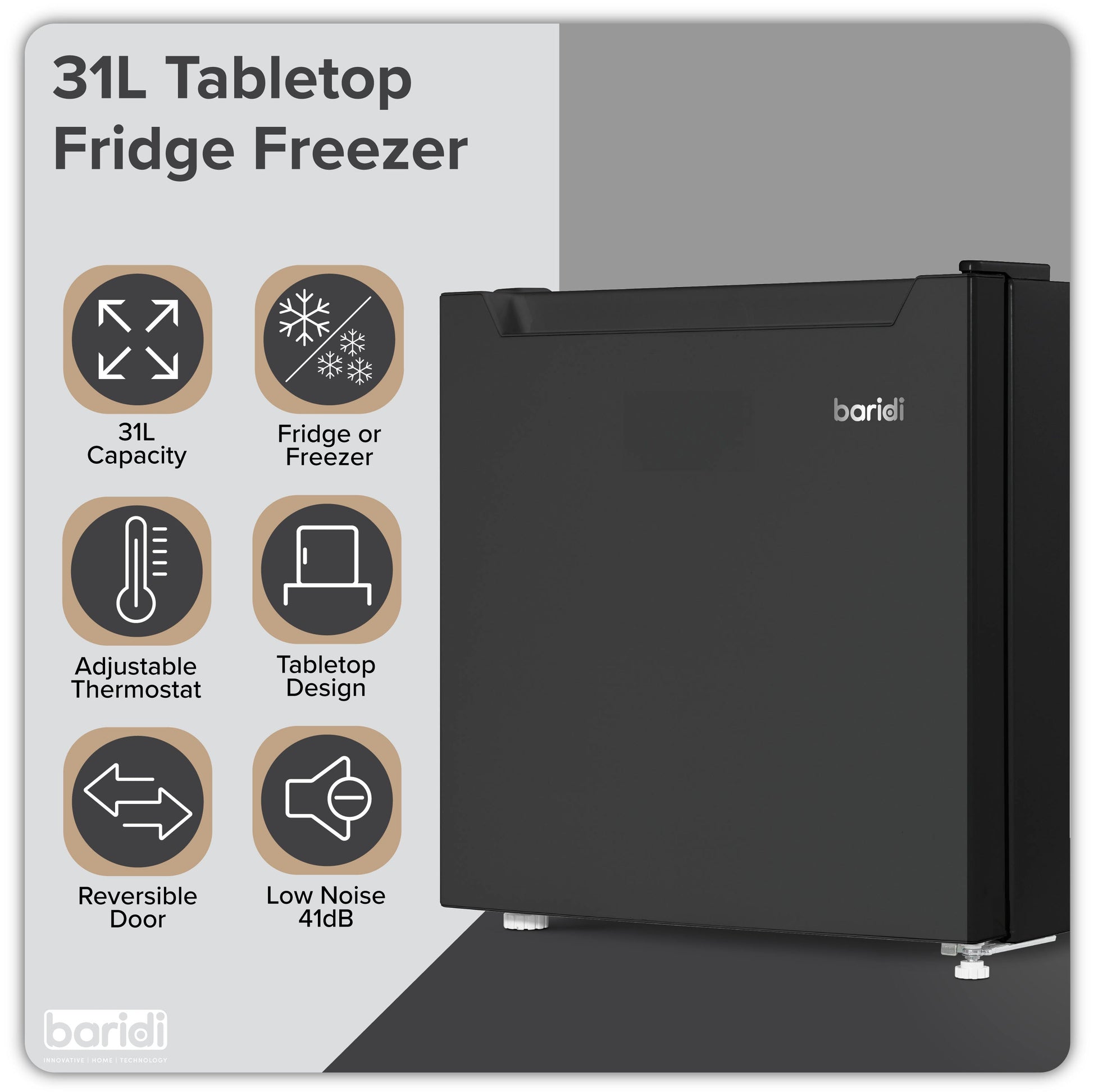Baridi Mini Tabletop Fridge/Freezer, 31L Capacity, Reversible Door, Black - DH255