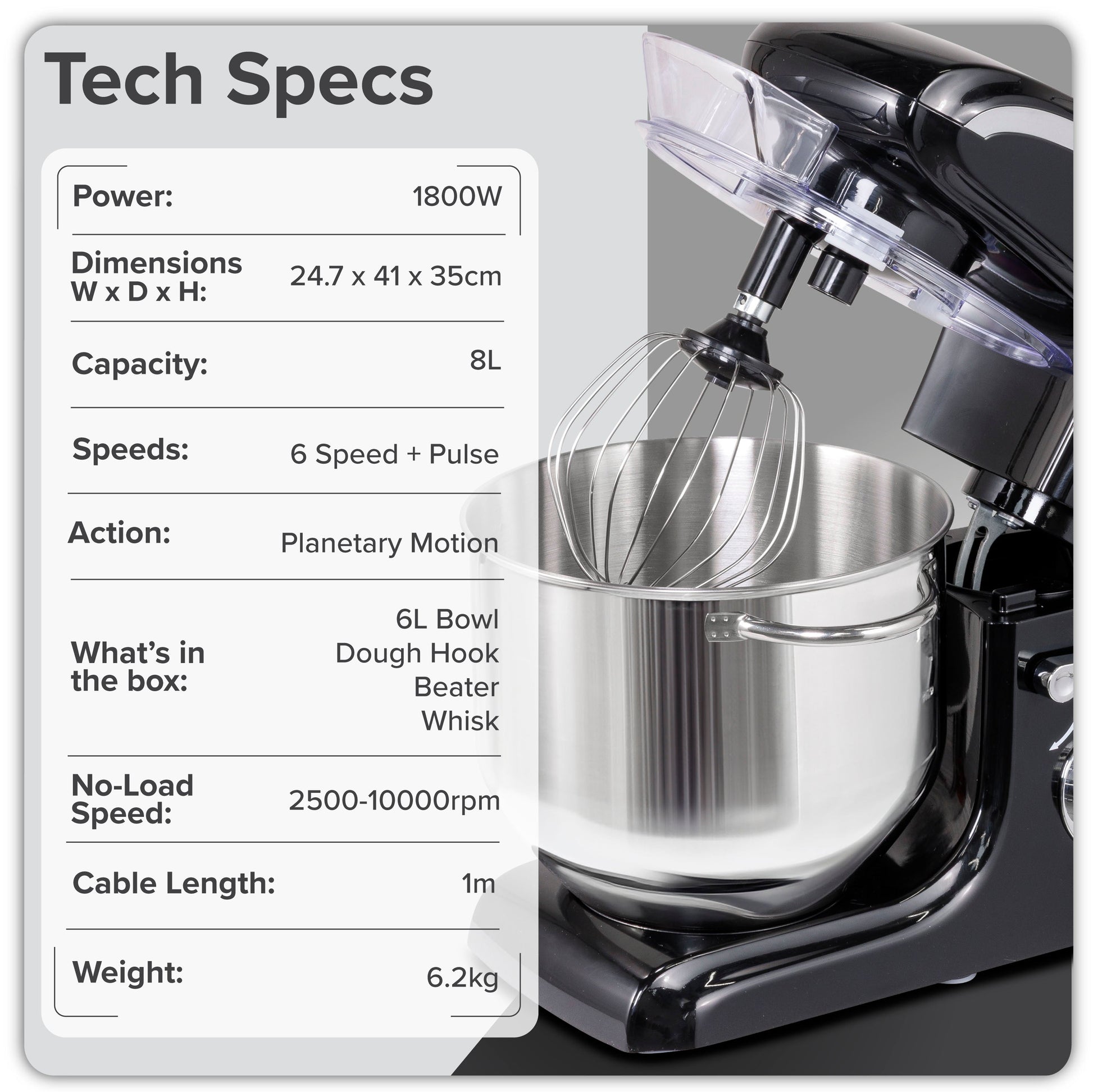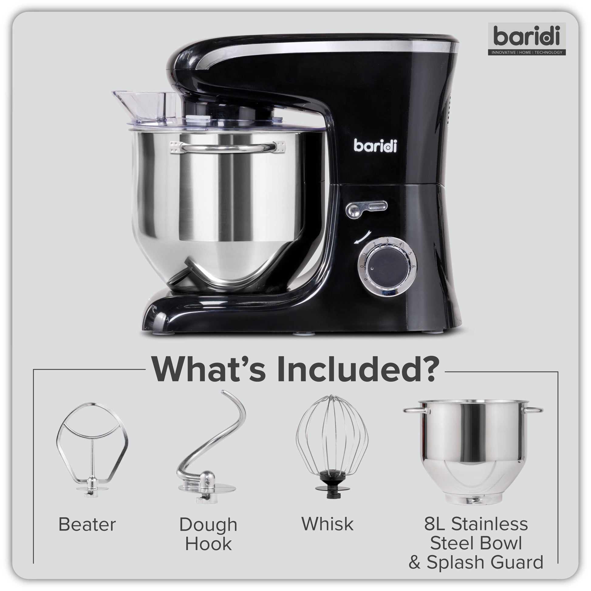 Baridi Stand Mixer, 8L Capacity, Supplied with 3 Accessories, 1800W, Black - DH174