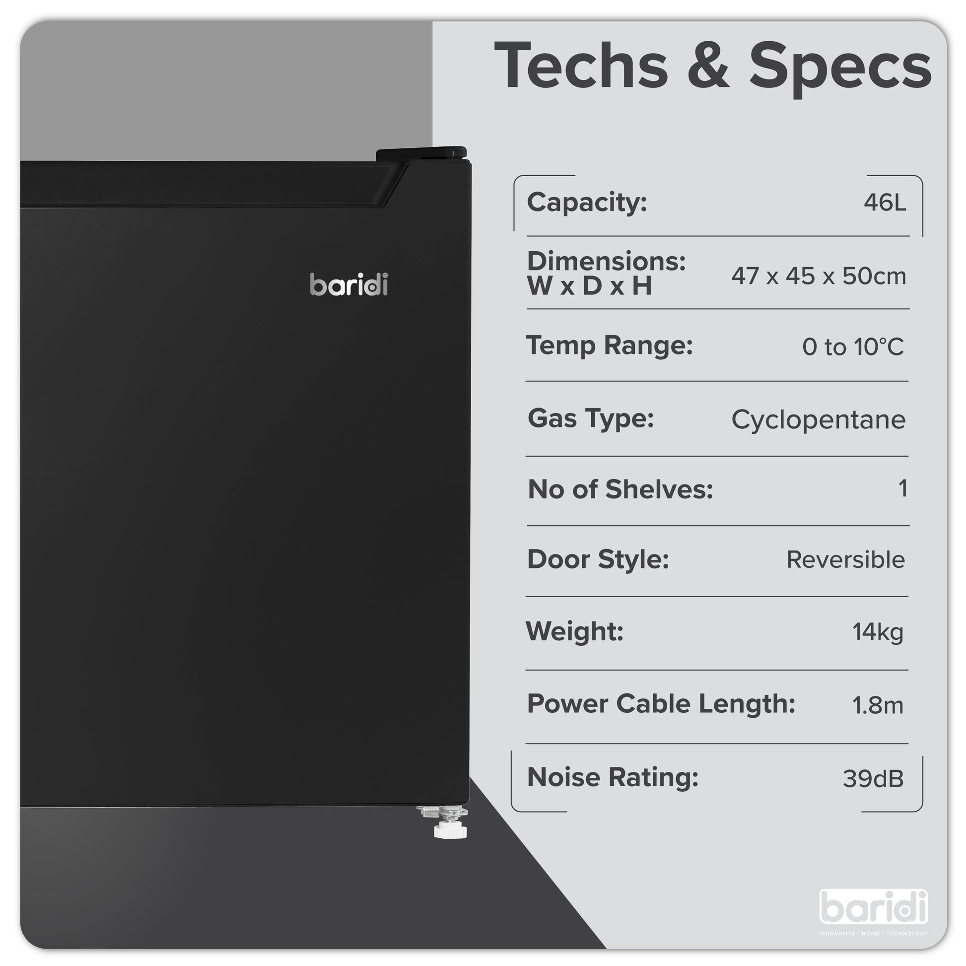 Baridi Tabletop Fridge with Ice Box, 46L Capacity, Adjustable Thermostat - DH257