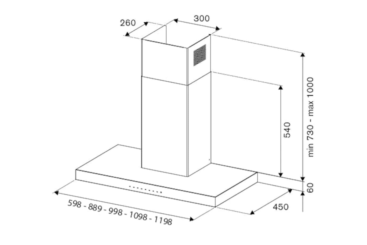 This 100 cm stainless steel wallmount hood has a single motor offering three speeds and effective stainless steel filters. Electronic controls with LED display make it simple to adjust and bright LED lights make it easy to see what you are cooking on the hob. The powerful motor extracts 590 m3/h max.