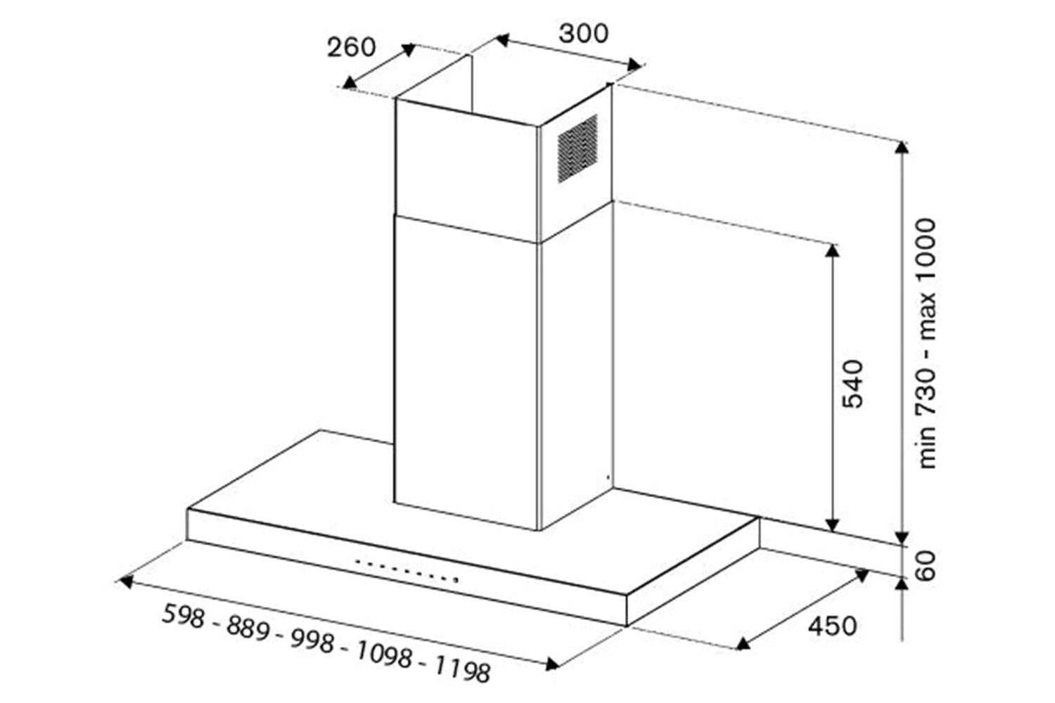 This 110 cm stainless steel wallmount hood has a single motor offering three speeds and effective stainless steel filters. Electronic controls with LED display make it simple to adjust and bright LED lights make it easy to see what you are cooking on the hob. The powerful motor extracts 590 m3/h max.