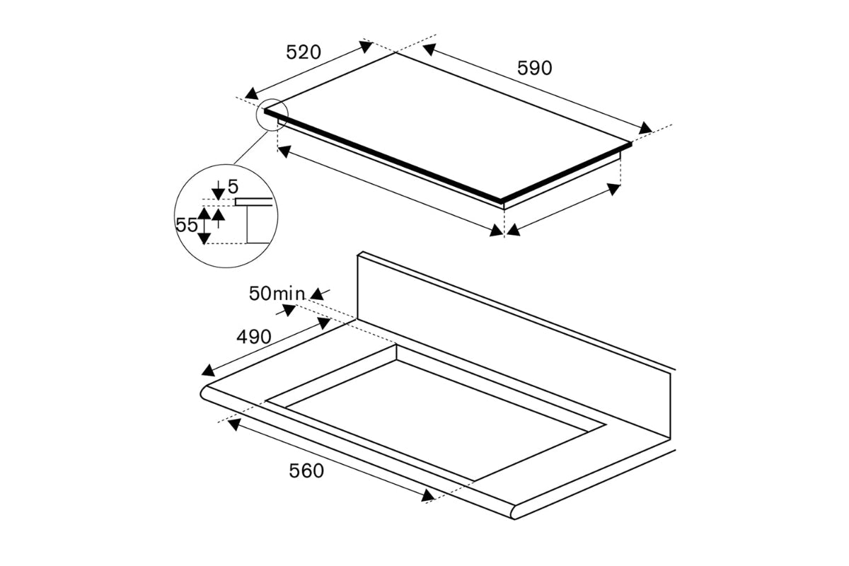 - Safety induction cooktop: Residual heat indicator, Automatic switch off, Pot detection, Overflow security