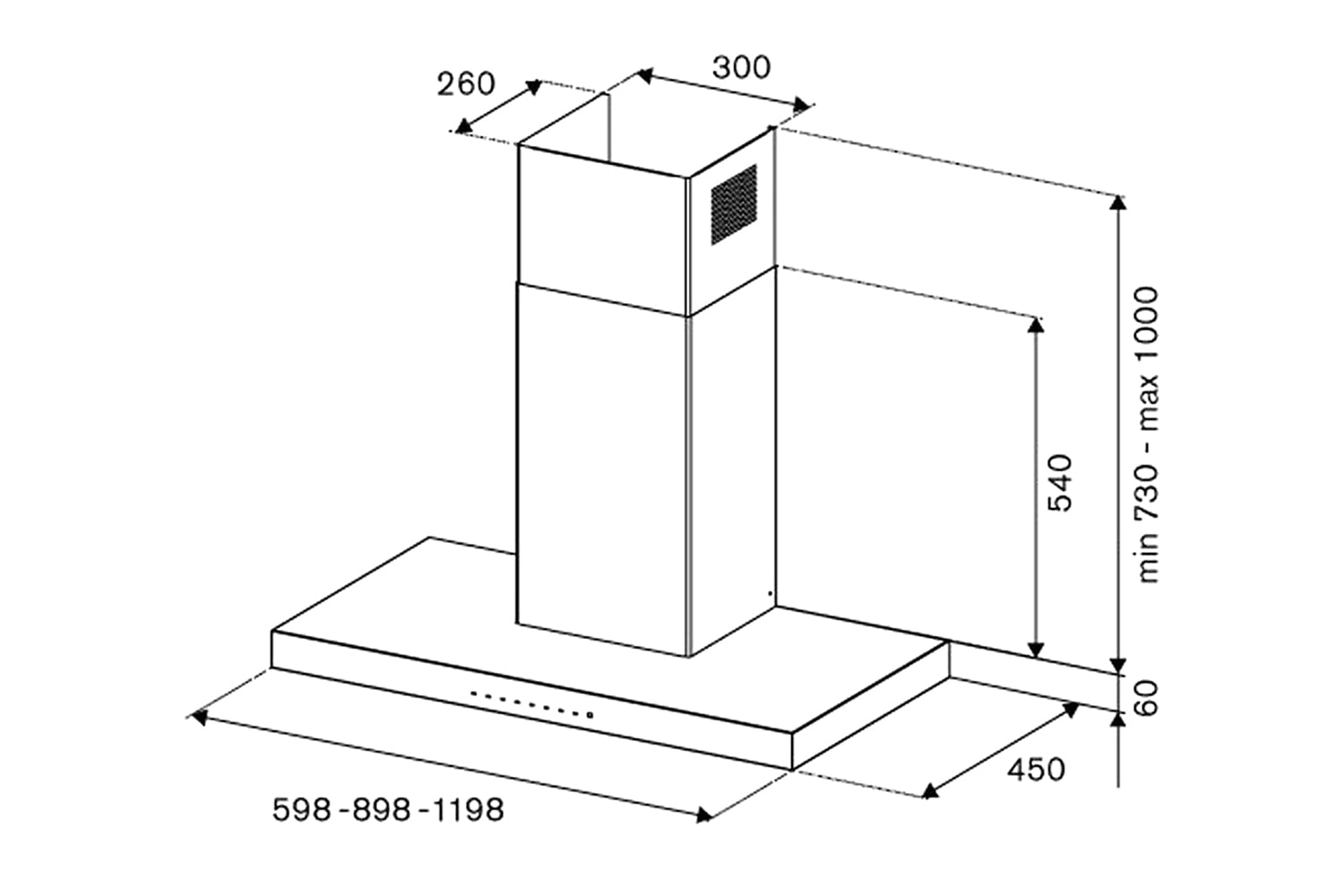 This 90cm matt black wall mount hood has a single motor offering three speeds and effective stainless steel filters. Electronic controls with LED display make it simple to adjust and two bright LED lights make it easy to see what you are doing on the hob. The powerful motor extracts 750 m3h max and is rated A+ energy class.