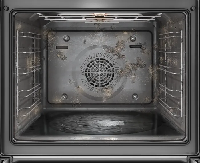 Is your oven lightly soiled and in need of a quick cleaning? Just place approximately 400 ml of water with a drop of liquid detergent in the bottom of the oven cavity and select the proper cleaning programme. The environmentally friendly cleaning system softens baked-on residue, making it much easier to wipe off afterwards.