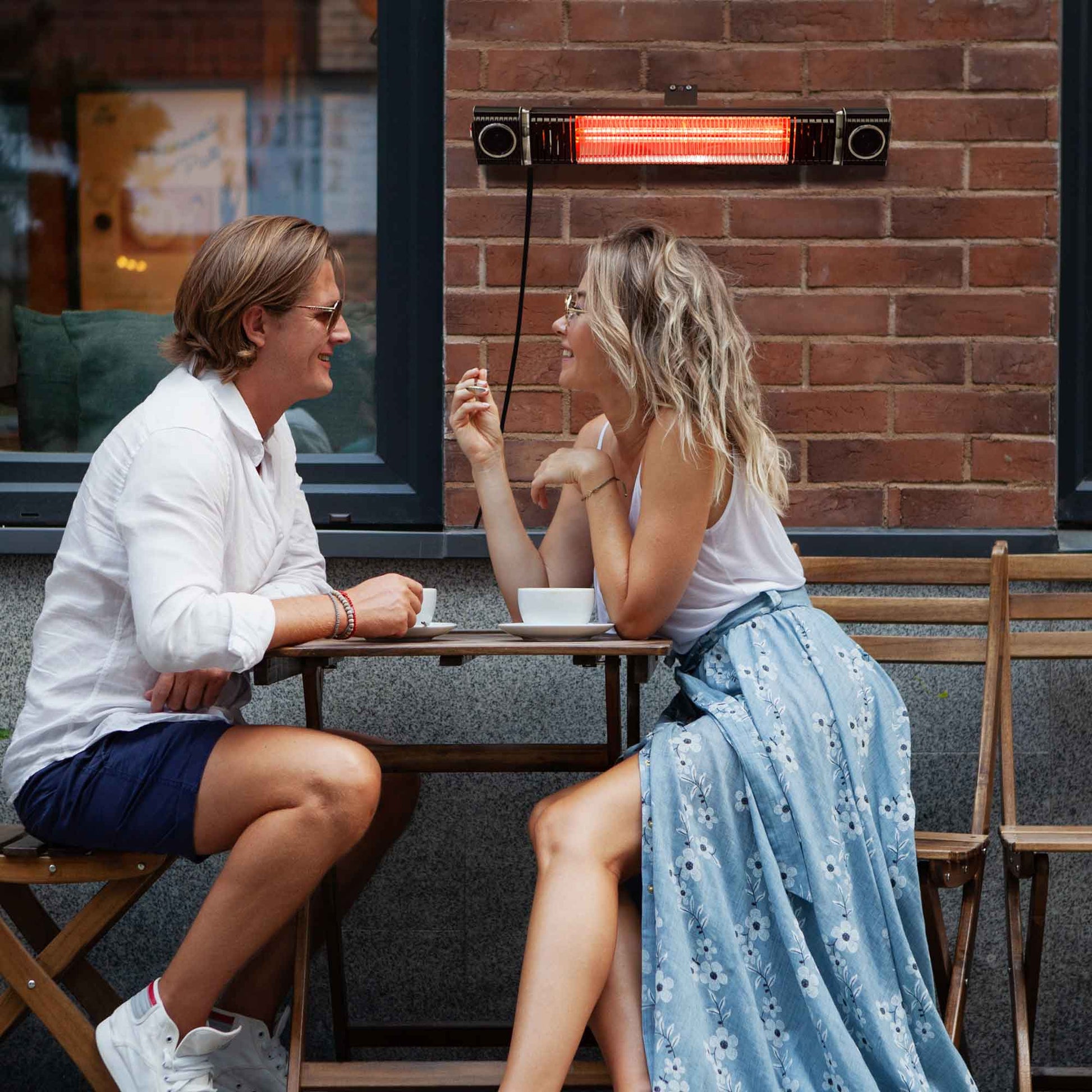 Infrared Outdoor 2000W Patio Heater with Wireless Speakers, Black - IPX5 Rated - DG125