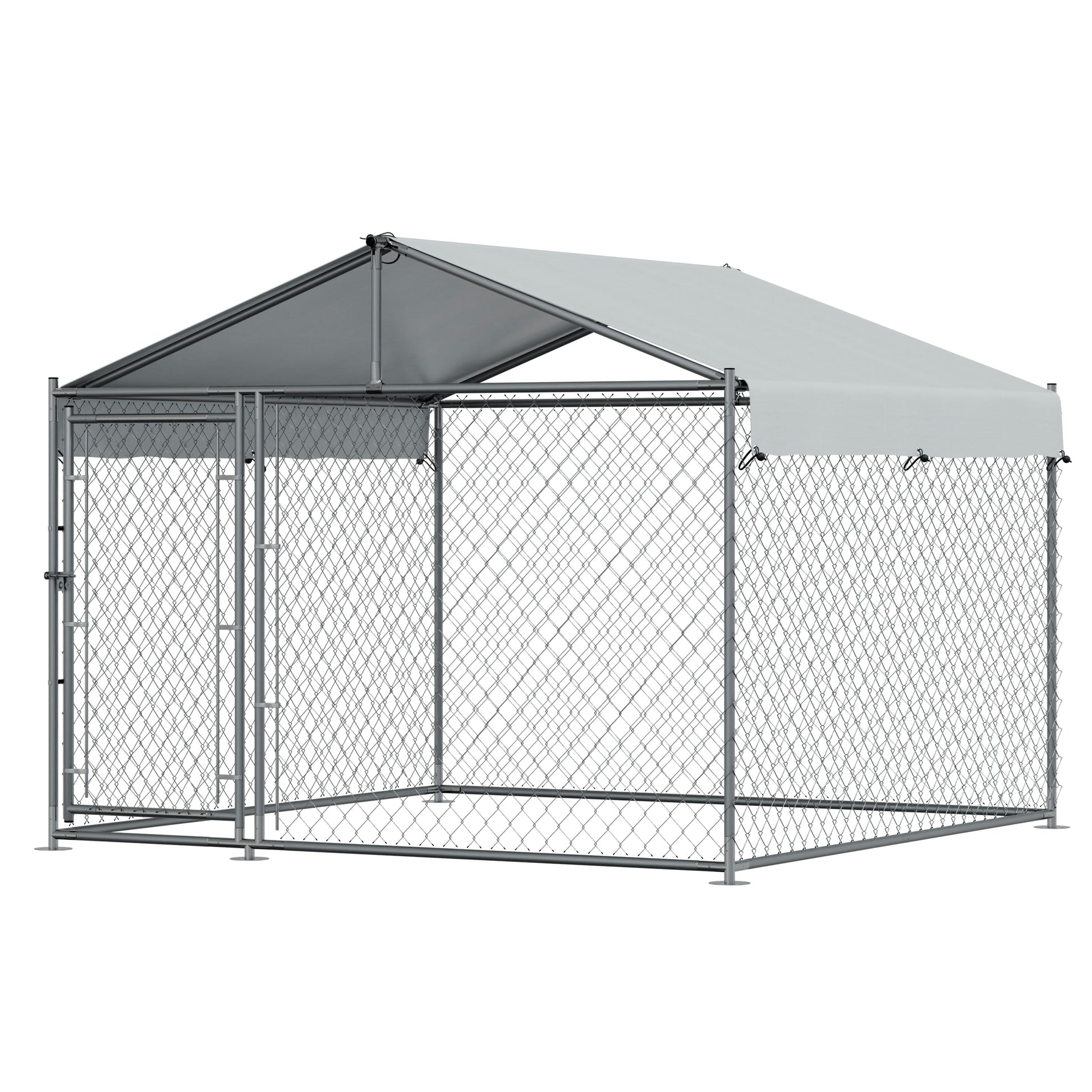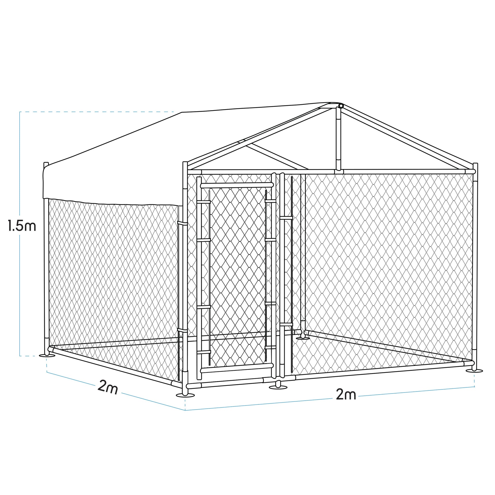 Galvanised Steel Dog Kennel with Roof Cover & Chain Link Fencing, 2x2x1.5m - DG281