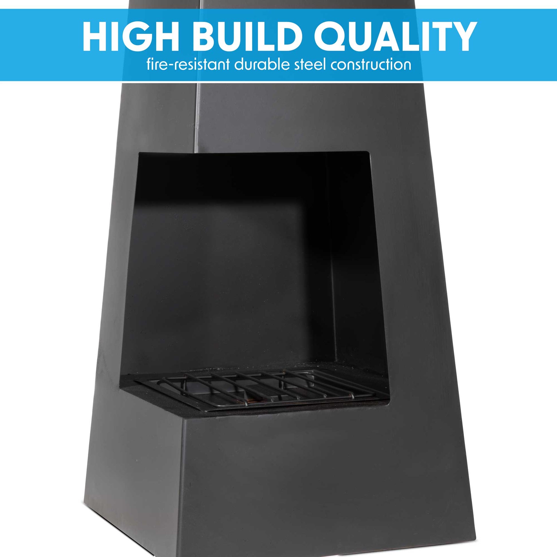 - Durable Build - This chiminea is made of a durable steel construction and can hold a large volume of logs, charcoal, firewood, or other fuels. Comes coated in a long lasting fire resistant paint to keep the chiminea looking good as new. Also available in Corten steel design – Model No. DG106