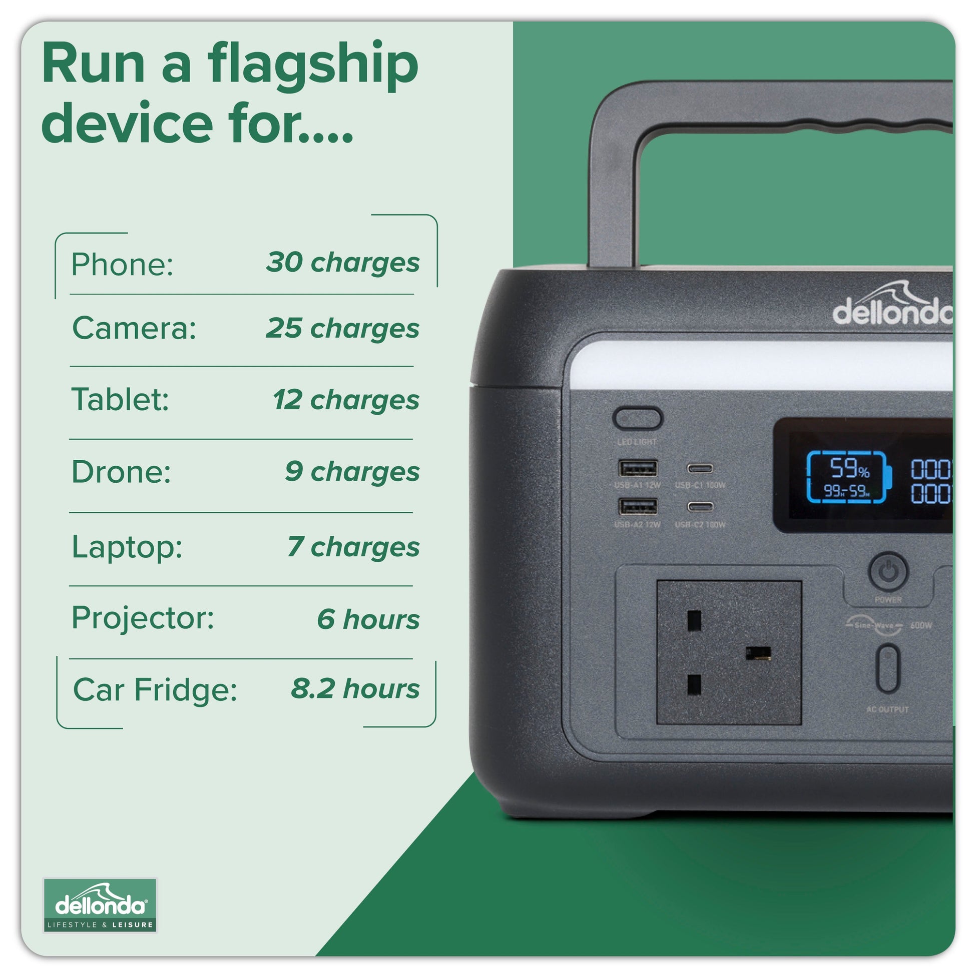 Portable Power Station, 600W, 512Wh, LiFePO4 Battery, 230V - DL161