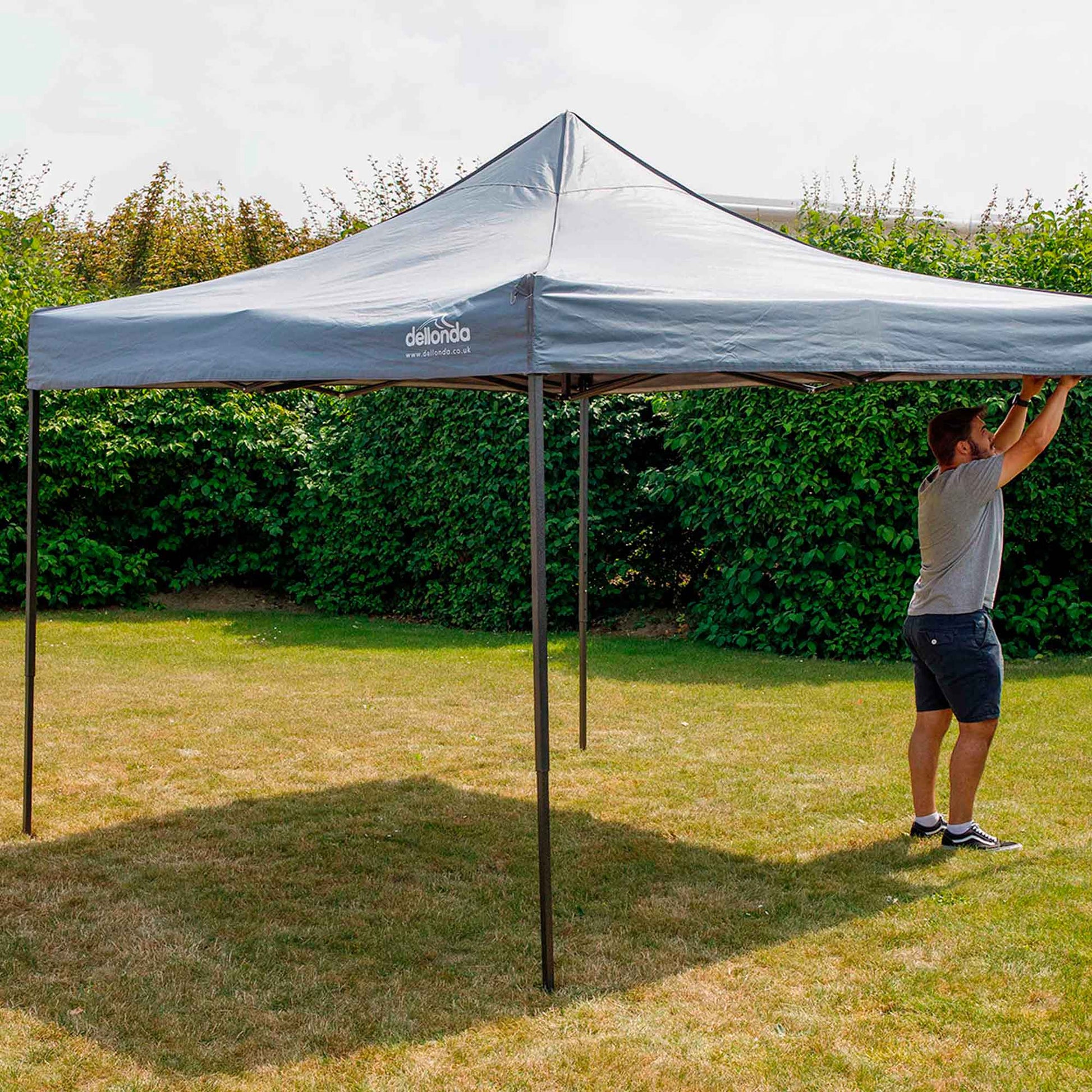 - Spacious Gazebo – This pop up gazebo is a spacious 3 x 3 x 3.05m with a durable weather-resistant powder-coated steel frame. You can fit up to 10 people, 3 tables and more under the canopy!