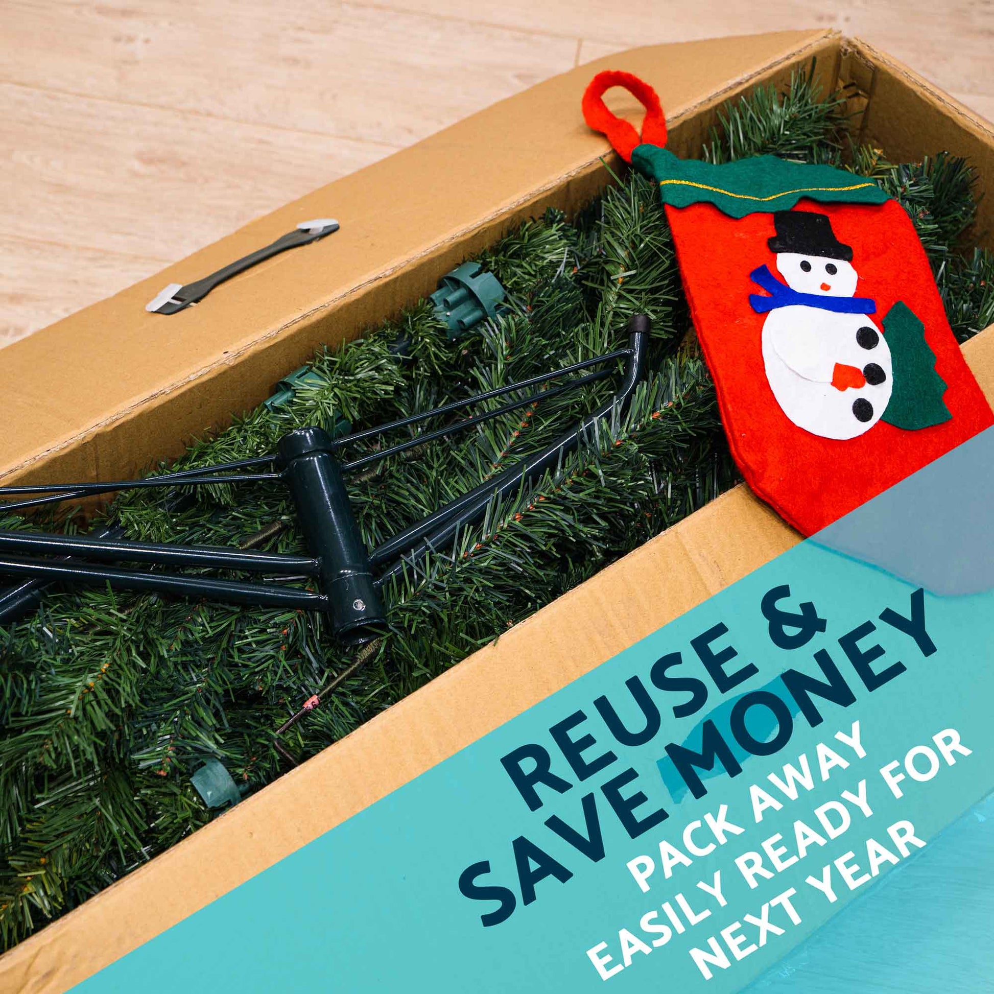 - Quick Assembly - Hinged branches make this Christmas tree quick to assemble and also to store away. Includes strong sturdy metal base, which folds away for easy storage.