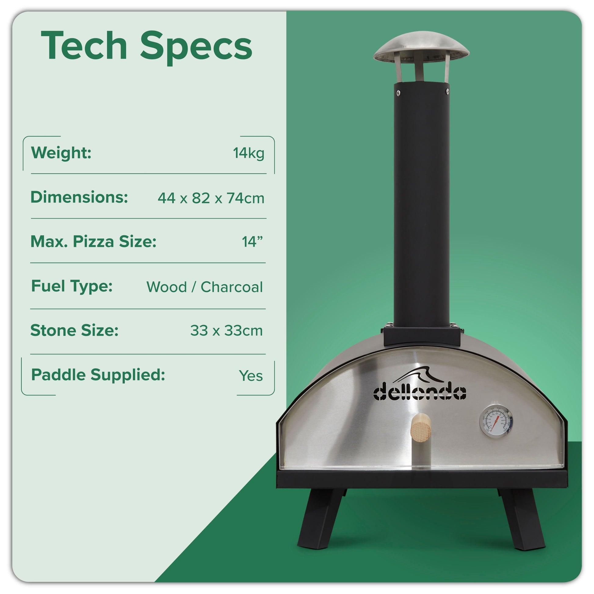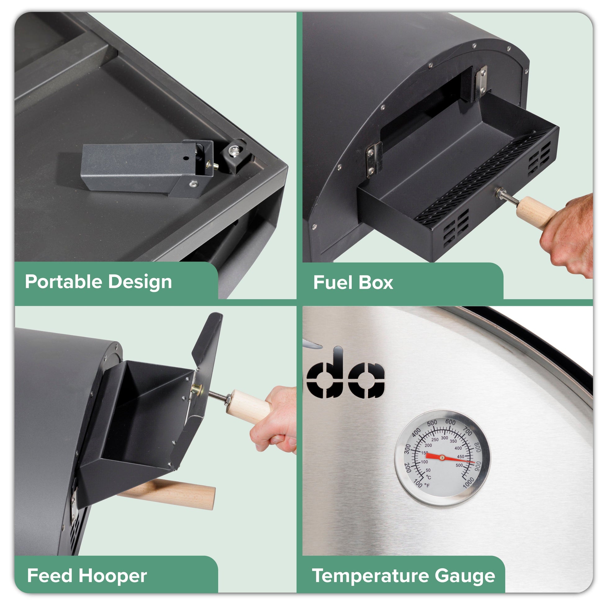 Wood-Fired 14" Pizza Oven and Smoking Oven - Portable, Black/Stainless Steel - DG10