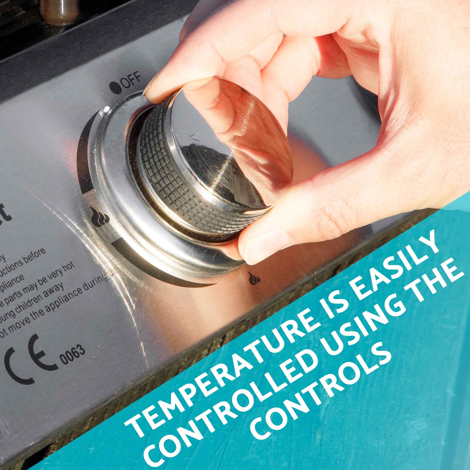 - Portable Gas Cooking - Plancha bbq grill with three stainless steel burners gives even heat distribution. Use in the garden, travel or camping trips.
