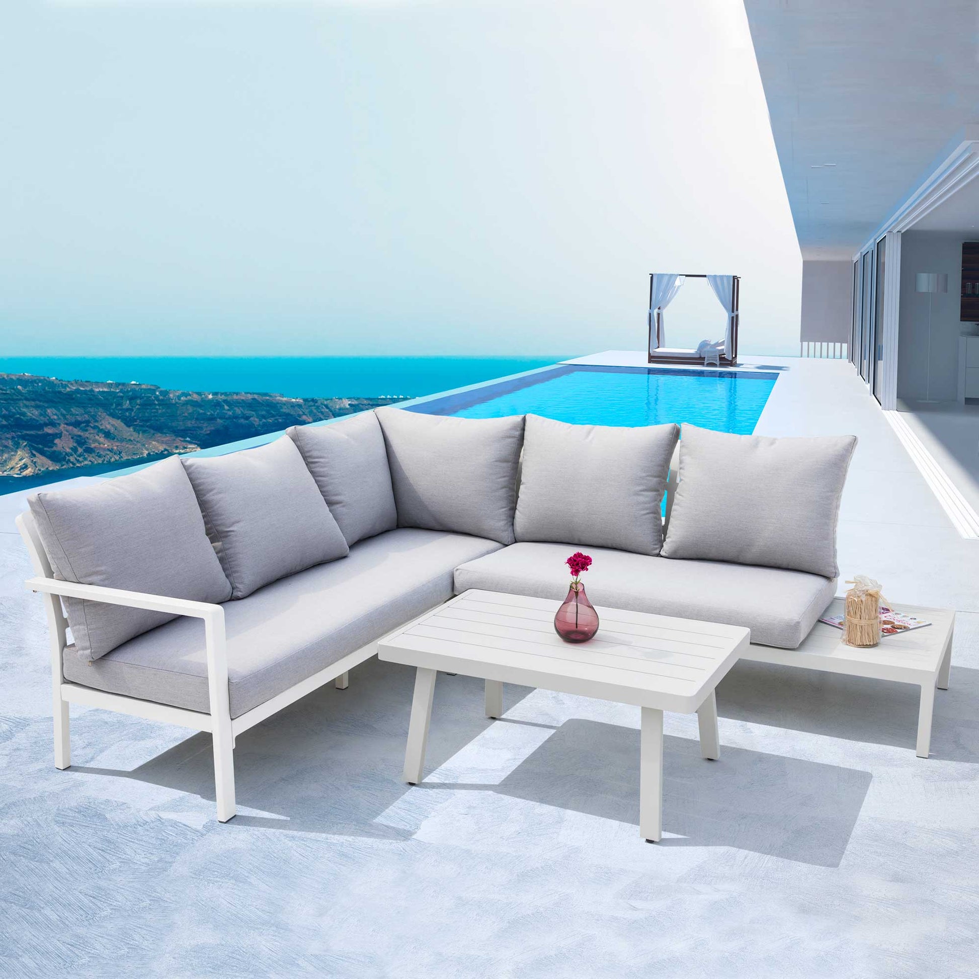 Kyoto 3 Piece Outdoor Corner Sofa & Coffee Table Set, White - DG53