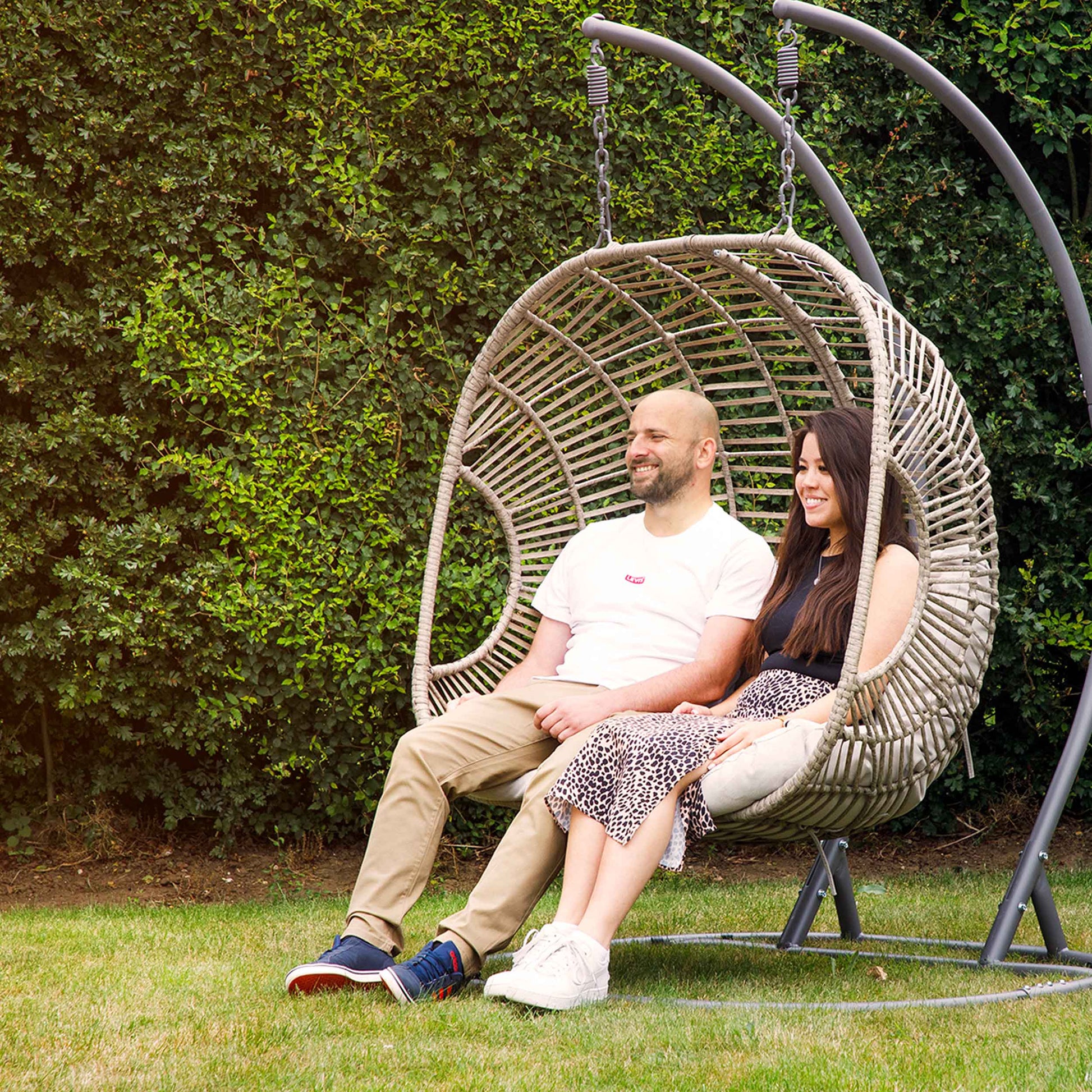 - Stylish Design - Be the envy of all your friends and family with a hanging egg chair. They suit any outdoor living space, including gardens, patios and decking areas. The hanging seating basket, when hung up, is the perfect height to get in and out of, making using the chair a pleasure.