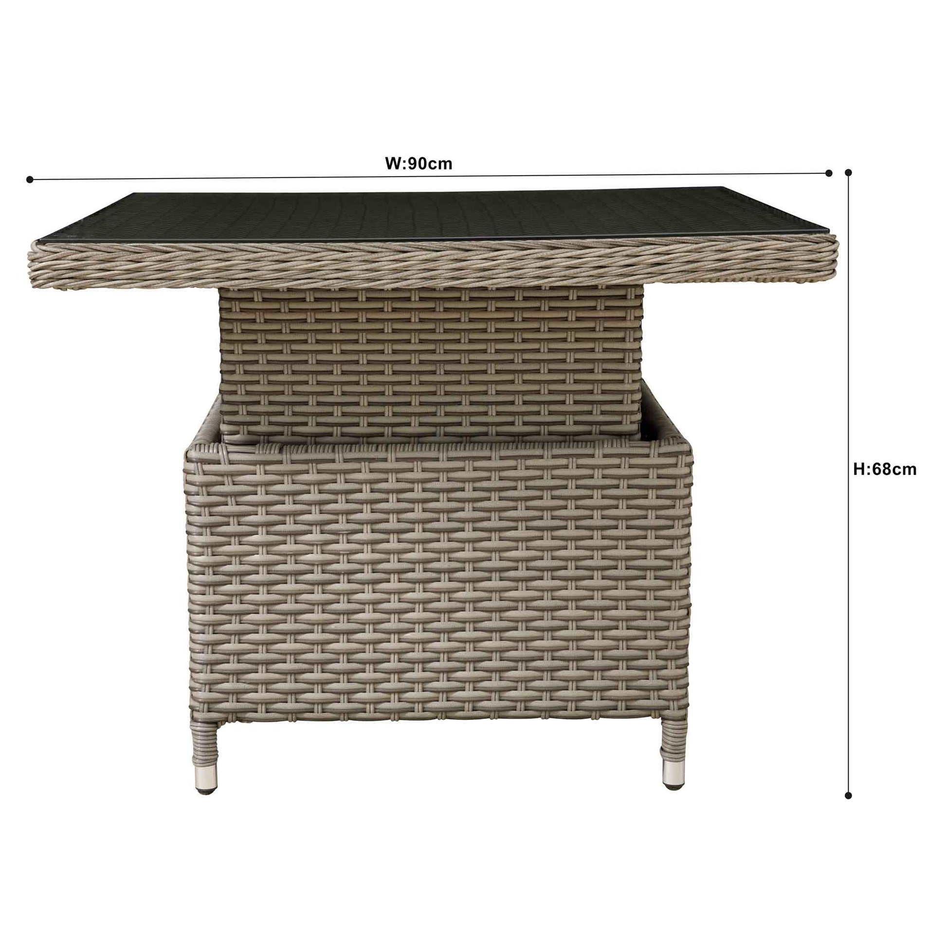 - Product Dimensions - Table 90 x 90 x 46-68cm (W x D x H). Some assembly is required. Colours may slightly vary due to lighting conditions.