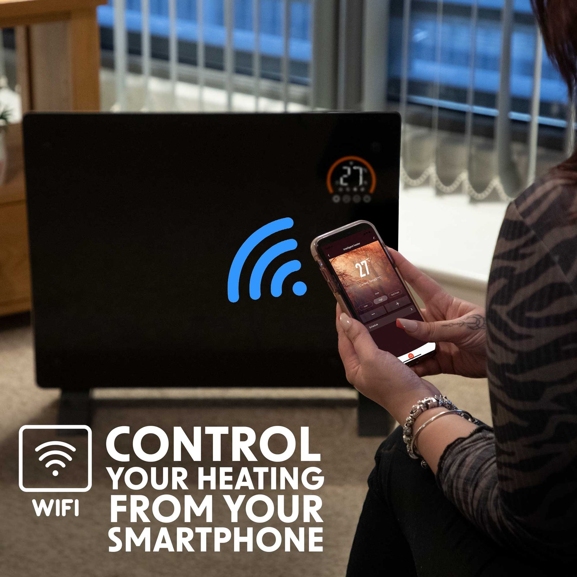 Baridi Electric Glass Panel Heater, 1500W, 24/7 Timer, Wi-Fi Enabled, Remote Control, Black - DH137