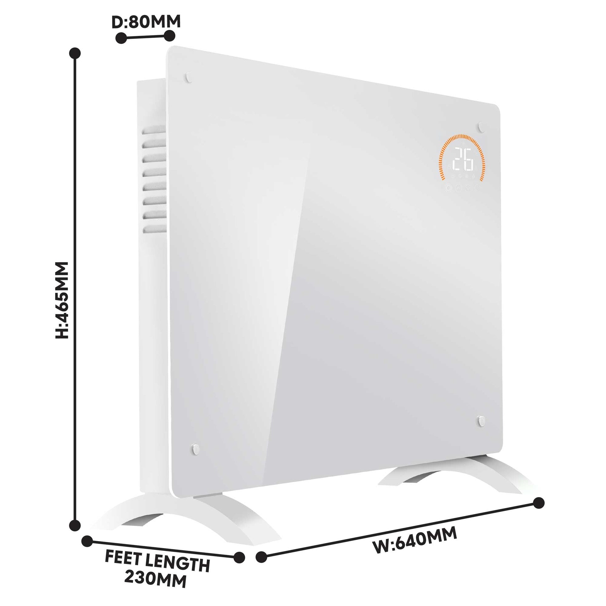 Baridi Electric Glass Panel Heater, 1500W, 24/7 Timer, Wi-Fi Enabled, Remote Control, White - DH138