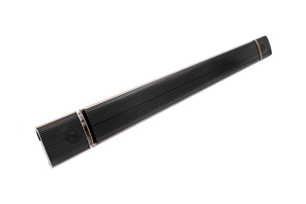 This model of IR radiant heater comes with a remote control with its own LCD screen for operating and monitoring the temperature levels and the volume of the speakers. With four heat settings (25%, 50%, 75%, and 100%) and 30 time logs for automating your IR heater, the remote can be used for single heaters or multiple models across your property. If you would rather, you can also use a dedicated iOS or Android app to control the heater and speakers.