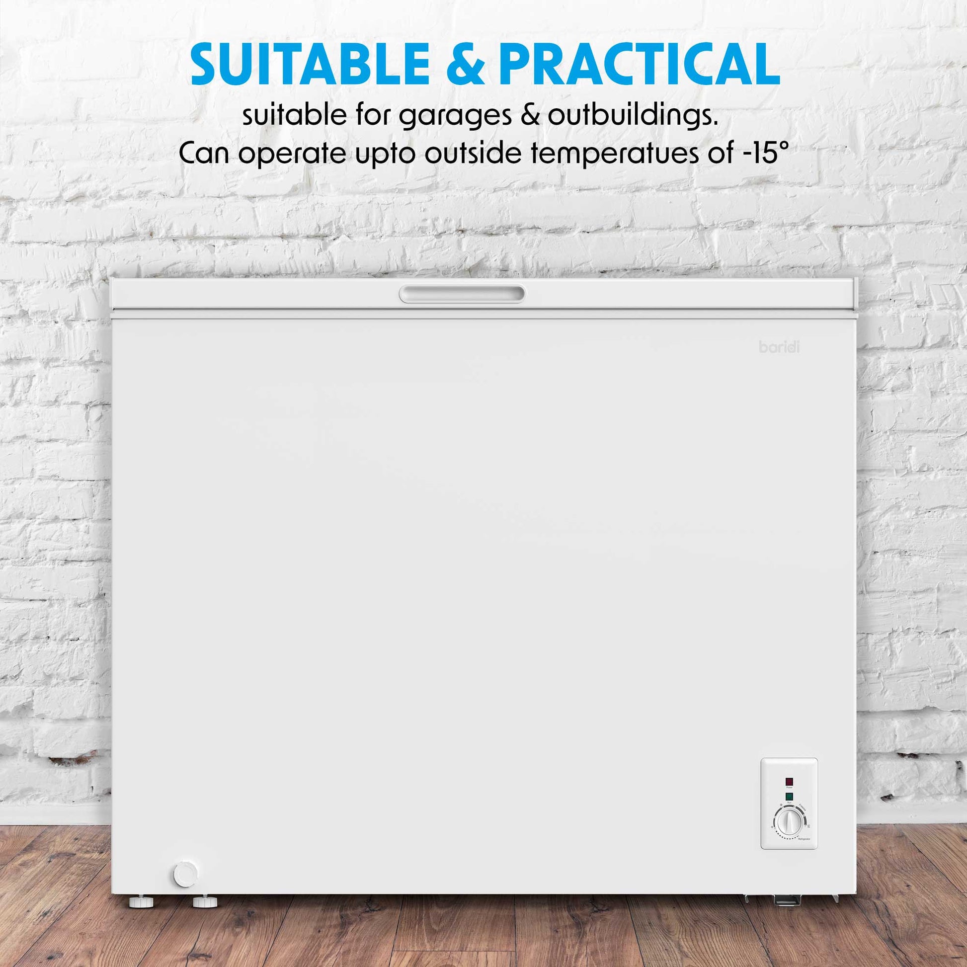 Baridi Freestanding Chest Freezer, 199L, Garage and Outbuilding Safe, Thermostat, White - DH111