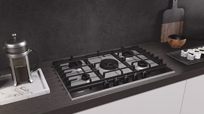Gas on Metal Series 2 perfectly combines design and functionality. All components of the hob are harmoniously aligned: the new Series 2 black knobs, made of two different finishing - matte and shiny - match with the black glass insert and black burners. The cast iron raised grids provide either a stable support to Haier pots or a lighter perception of the hob.