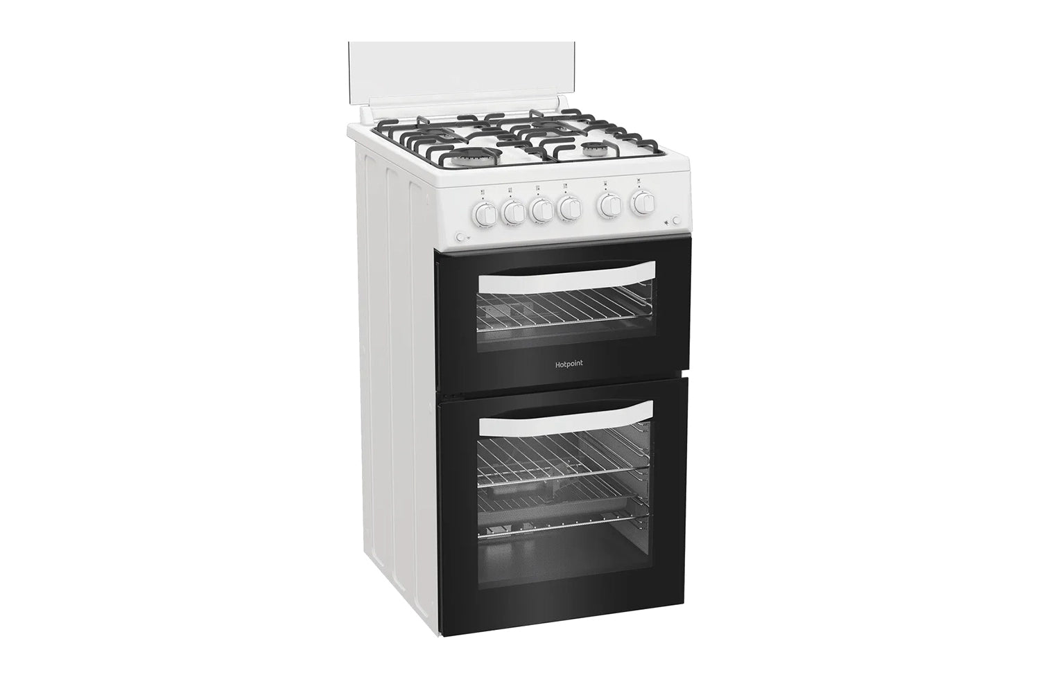 Hotpoint 50cm Double Oven Gas Cooker with Glass Lid | HDG5GCW