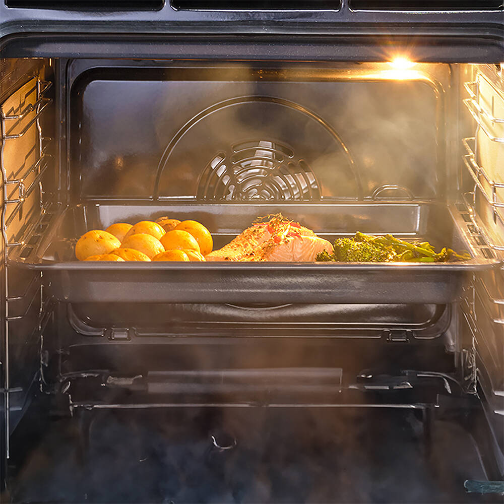 Combine traditional oven cooking with the benefits of steam for mouth-wateringly nutritious meals every time. Simply pour water into the dedicated recess at the bottom of the oven and choose from 3 steam settings to give you the perfect humidity levels for cooking bread, meat or fish to perfection.