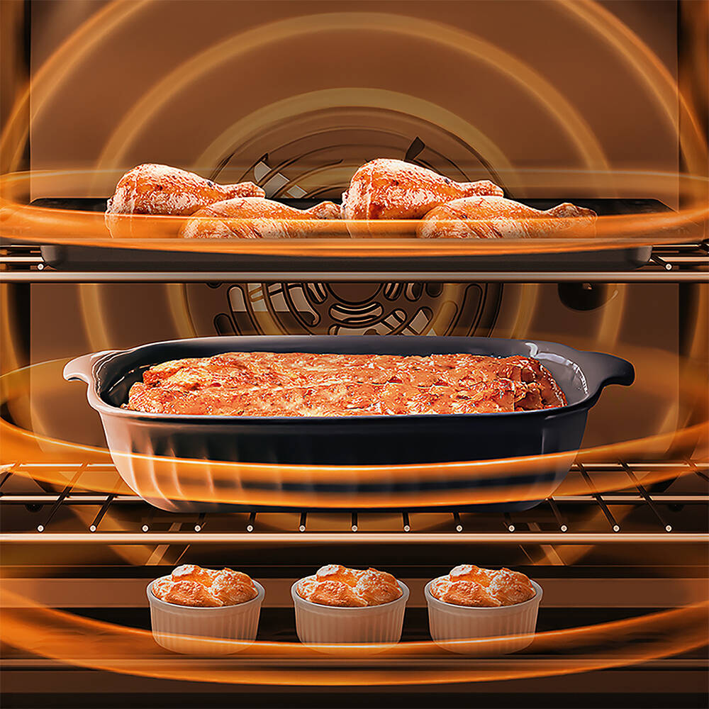 Hotpoint’s Multiflow technology ensures a precise and consistent temperature across every shelf, so every dish is cooked to perfection—no matter where it's placed. With the ability to cook on up to three levels simultaneously, you’ll enjoy effortless efficiency, saving you both energy time.*