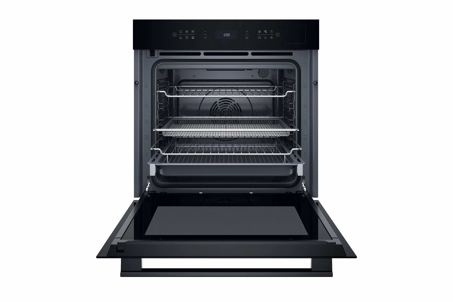 Crafted for those who value style and performance, this Hotpoint Class 6 oven blends cutting-edge technology with minimalistic design, enhancing your cooking experience. Featuring a sleek black finish and intuitive touchscreen control, it offers 8 cooking functions for perfect meals every time. ActiveMultiFlow technology ensures even heat distribution across the 73L cavity, allowing you to cook on 4 levels simultaneously without flavour transfer. Save up to 50% in cooking time and 45% in energy—ideal for family meals and gatherings. The integrated Air Fry function gives you crispy, golden results with up to 50% less fat, while the dishwasher-safe tray ensures easy cleanup. The Pizza function reaches 310°C for restaurant-style results in 10 minutes. ActiveSteam technology preserves moisture and nutrients for healthier meals. Simply add water to the extractable drawer and choose from 3 steam settings to cook bread, desserts, fish, meat, and vegetables to perfection. Cooking is effortless with MyMenu, which selects optimal settings for 60 recipes. The 2 telescopic shelves and soft-closing door add a touch of luxury. Cleaning is easy with DualClean: choose Pyro Clean for deep cleaning at high temperatures, or Diamond Clean to tackle everyday residue with steam. With an A+ energy rating, this oven combines advanced features and energy efficiency without worrying about your electricity costs.