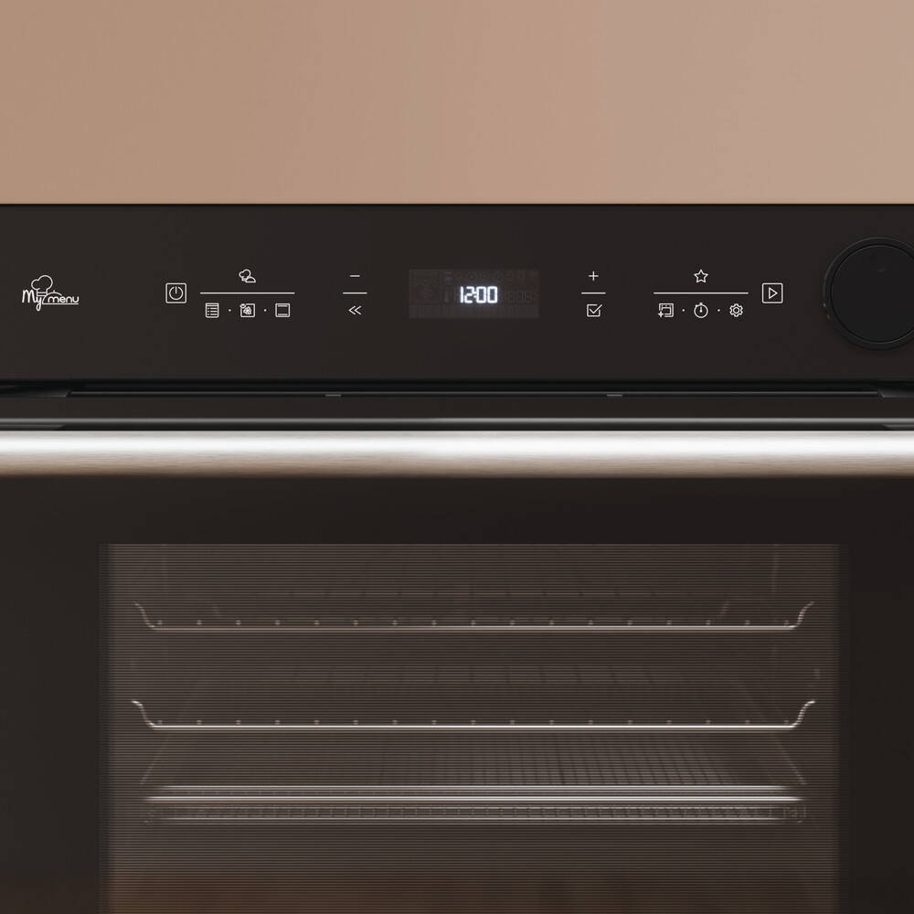 This Hotpoint Class 6 oven combines cutting-edge technology and minimalistic design, elevating your cooking experience. Featuring a sleek black finish and intuitive touchscreen control, it offers 8 cooking functions for perfect meals every time. ActiveMultiFlow technology ensures even heat distribution across the spacious 73L cavity, allowing you to cook on 4 levels simultaneously without flavour transfer. Save up to 50% in cooking time and 45% in energy*—ideal for entertaining or family meals. The Air Fry function provides crispy, golden favourites with up to 50% less fat**, and the dishwasher-safe tray makes cleanup effortless. The Pizza function reaches 310°C for restaurant-quality results in just 10 minutes***. MyMenu selects the optimal settings for 60 recipes, making meal prep easy. The telescopic shelf and soft-closing door add a premium touch. DualClean offers two convenient cleaning options: Pyro Clean for a deep clean that burns off tough stains, or Diamond Clean to tackle everyday residue with steam. With an A+ energy rating, you can enjoy these advanced features without worrying about your electricity bill. *Comparing cooking roasted potatoes, lasagna, tart and chicken pieces on 4 levels simultaneously vs cooking the same dishes in 4 separate runs (internal report). **Based on a standard 12” pizza, excluding preheat time. ***Based on external Certified Laboratory test results. Comparison between frozen french fries cooked with Air Fry function without oil addition vs deep oil frying methods (Deep Fryer SDA or cooktop Pan Frying). Different results obtained with Air Fry feature depending on the kind of food and oil addition.