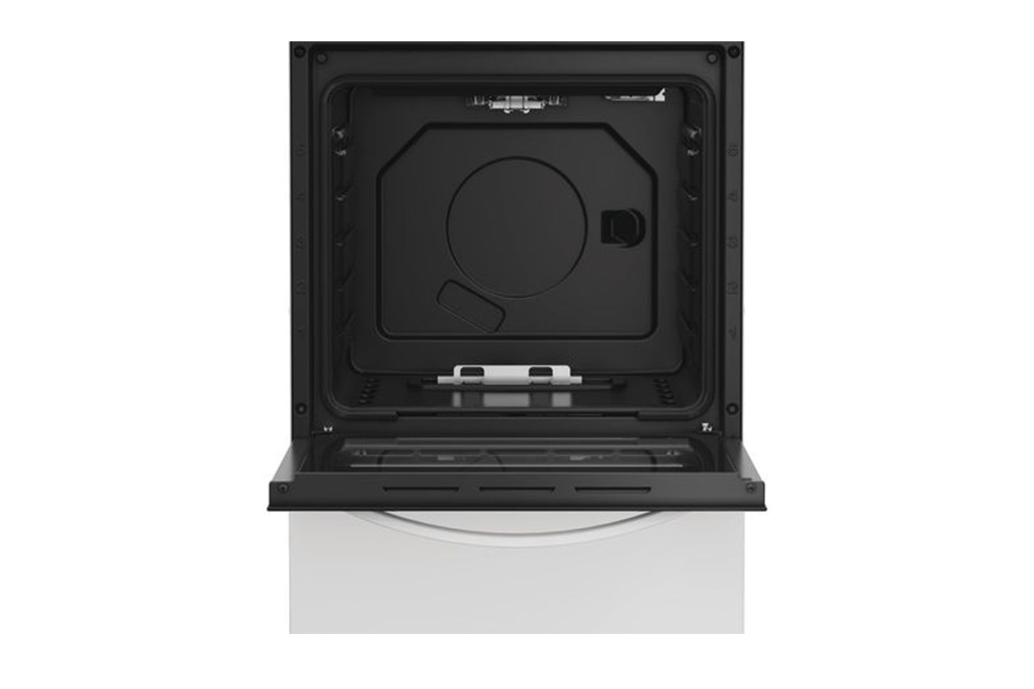 Enjoy making delicious dishes for the whole family with this indesit freestanding cooker. Finished in classic white, it brings a stylish yet timeless touch to your kitchen. This 50cm cooker is has a 55l oven, giving you plenty of space to cook all kinds of meals. Plus, the oven light lets you check on your food without opening the door. The 4 burner gas hob lights up instantly at the press of a button with auto ignition, and the sturdy enamel supports keep your pans stable for hassle-free cooking. The fast boil feature quickly boosts the heat to get your water boiling in no time. With an impressive a energy rating, this cooker is as efficient as it is easy to use - perfect for everyday meals.