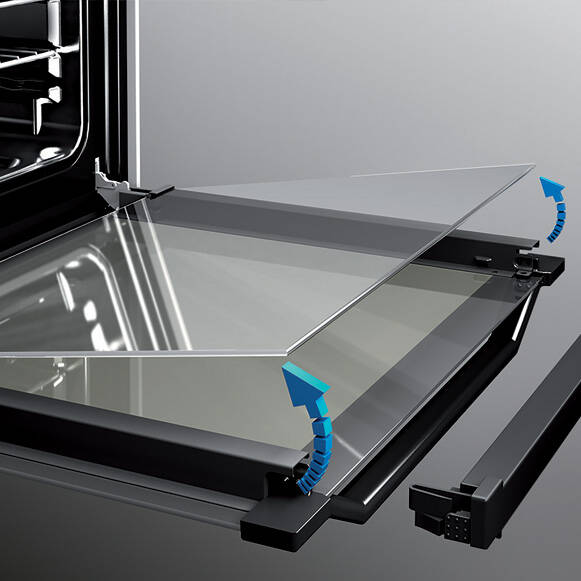 Remove the inner glass of the oven door in two easy steps for simple, fast cleaning.